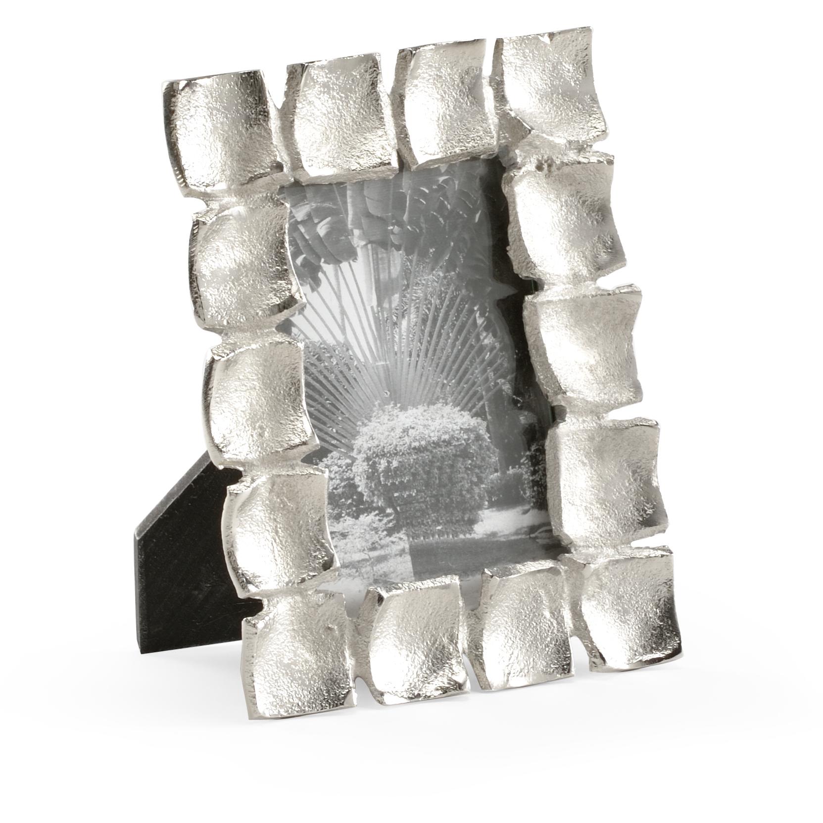 Display your favorite memories in this stunning accent that complements any decor. This 4×6 photo frame has a patinated silver finish, a clear protective glass covering and an easel for horizontal or vertical viewing. Add to any table, desk or bookcase in your home or office. Mount Vernon collection. Also available in other sizes.