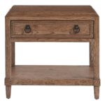 The Sienna Drawer Nightstand offers a blend of rustic charm and modern convenience. Its full Sienna finish and metal ring pulls create a warm and inviting aesthetic. The single drawer and open shelf provide ample storage space for your bedside essentials
