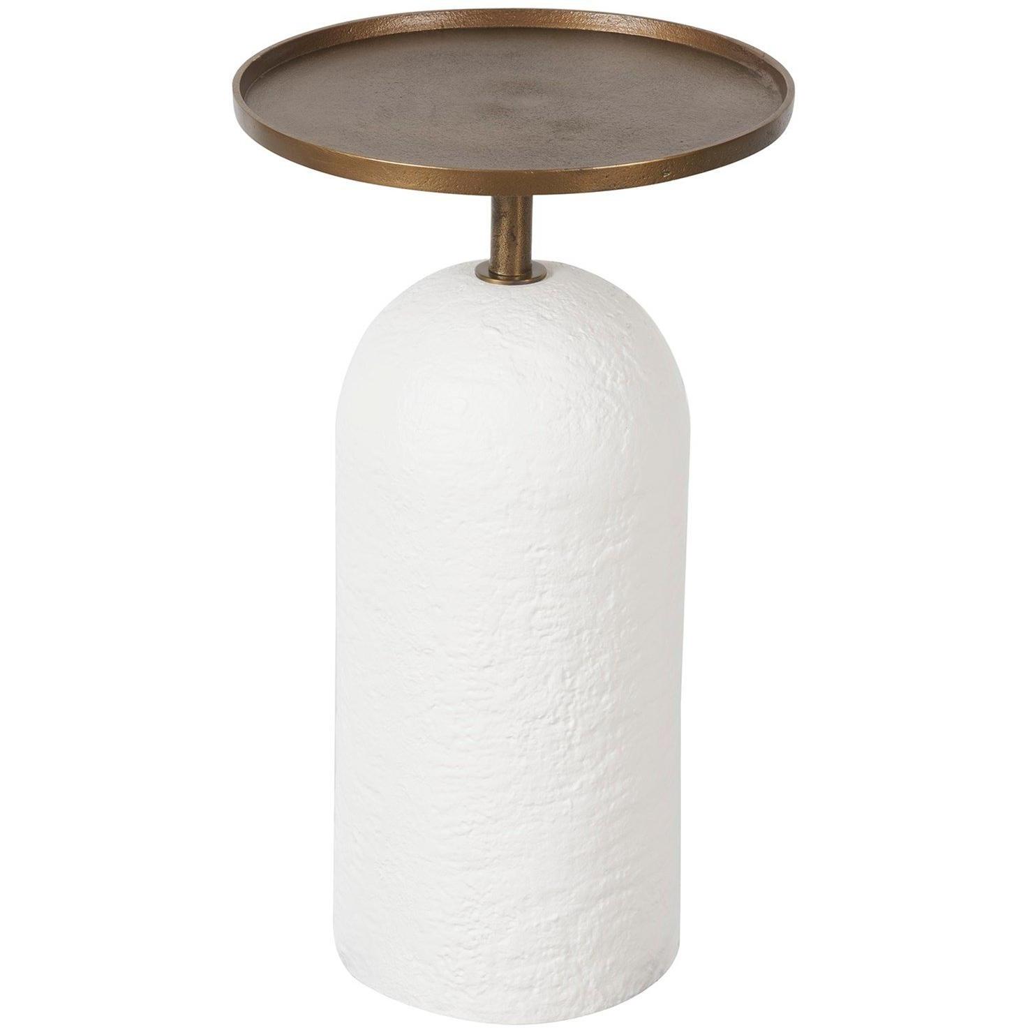 The Sienna Martini Table stands as a testament to modern elegance, featuring a sculptural White Plaster base that contrasts beautifully with its sleek, cast Aluminum top. This piece is the epitome of chic functionality, offering a stylish surface for beverages or enhancing a space with its sophisticated aesthetic charm.