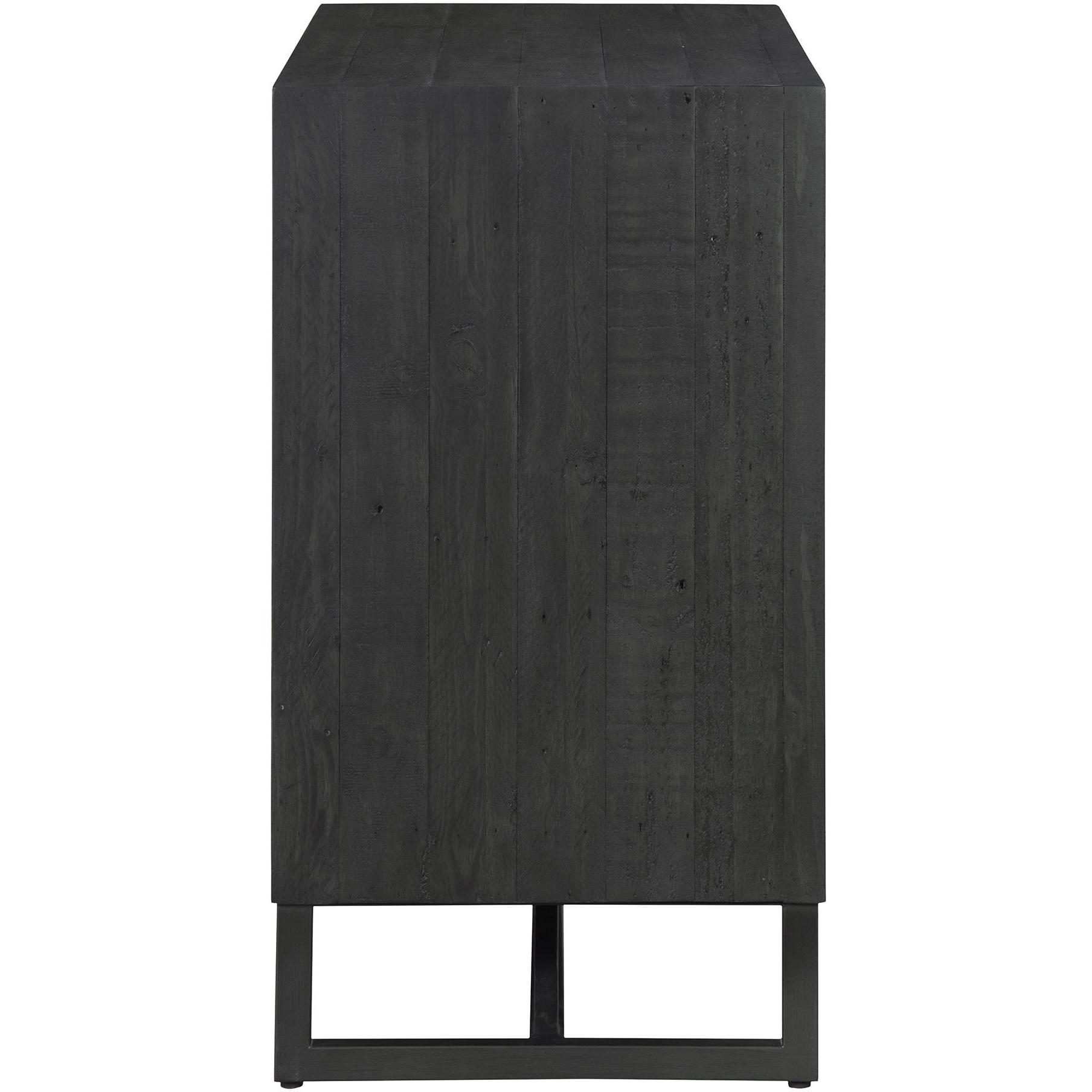 Made with solid reclaimed pine, the Sierra 2 door cabinet exhibits natural woodgrain and knot variances. Its single adjustable pine wood shelf provides ample space while a solid metal base & finished back give this 2 door cabinet its transitional design.