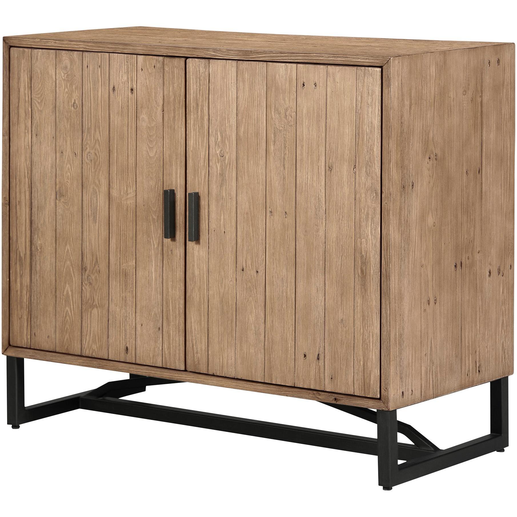 Made with solid reclaimed pine, the Sierra 2 door cabinet exhibits natural woodgrain and knot variances. Its single adjustable pine wood shelf provides ample space while a solid metal base & finished back give this 2 door cabinet its transitional design.