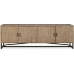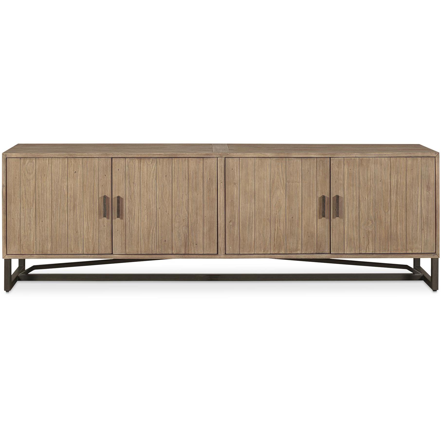 Made with solid reclaimed pine, the Sierra media unit exhibits natural woodgrain and knot variances. It provides ample storage while a solid metal base & finished back give this media unit its transitional design.