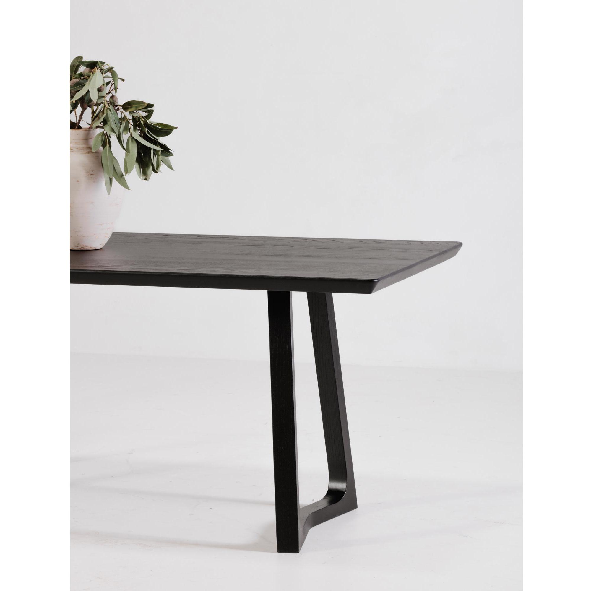 Crafted from solid white ash with a blackened finish, Silas’ bold, dramatic dining aesthetic speaks for itself. Featuring grain patterning, swirls, and beautiful coloring that ensures no two tables are exactly alike. This mid-century modern classic features an airy base and rectangular tabletop design that will gently fit any style, open-plan dining rooms or country-style kitchen.