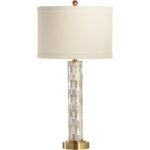 The Simmons Lamp features a shimmering column of mother-of-pearl and mirrored tiles, elegantly set atop an antique brass base. Complete with a built-in USB port, it blends luxe style with everyday functionality.