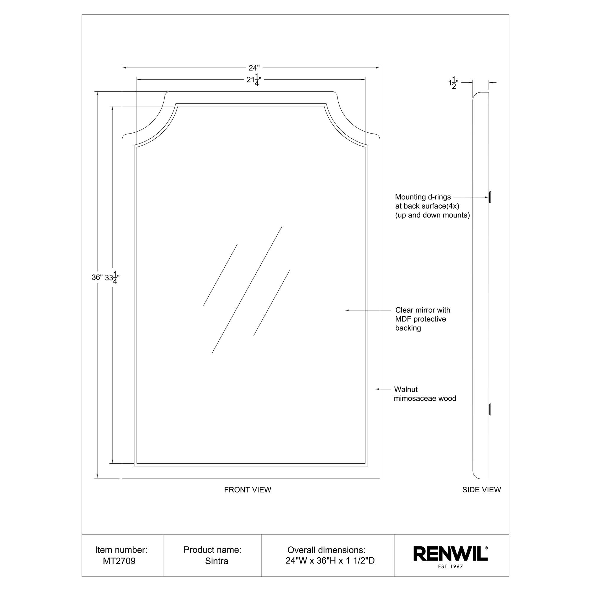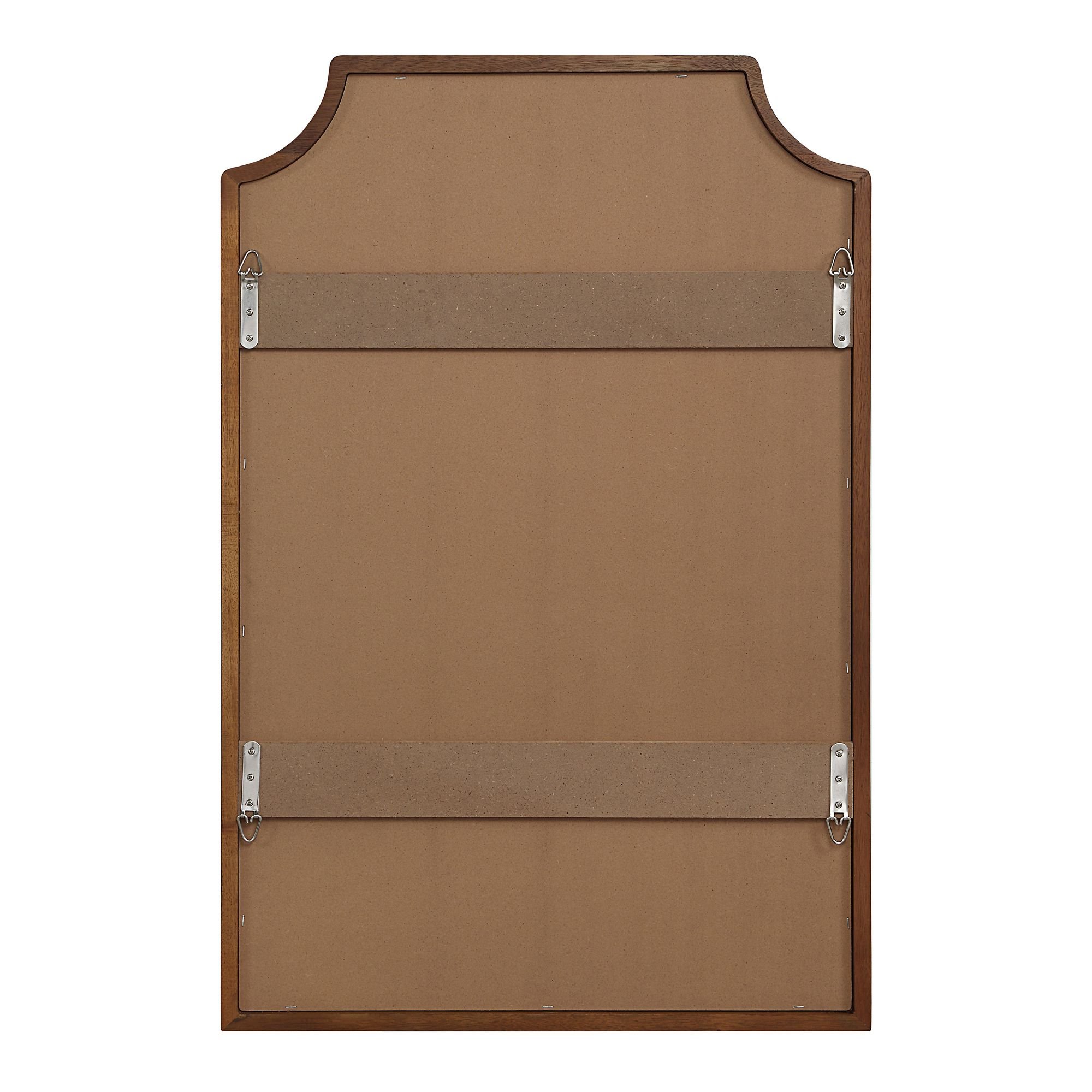 Loaded with enduring appeal, this wall mirror would be a stylish pick for any transitional decorating scheme. Designed with classic lines, its substantially thick wood frame features a timelessly chic walnut-painted finish for a look that represents your great taste. Crystal-clear mirror glass delivers a distortion-free reflection for a high-end feel in any space.