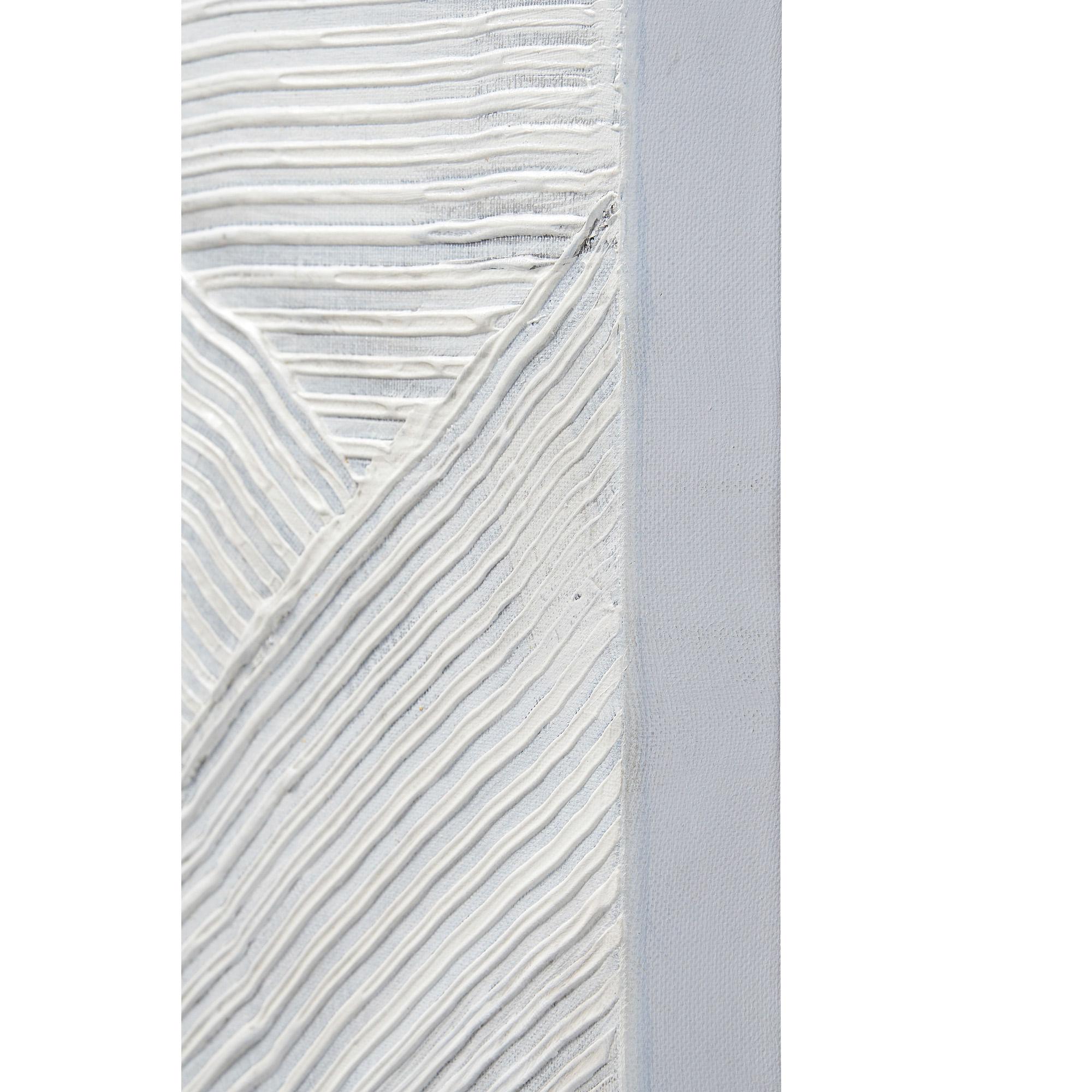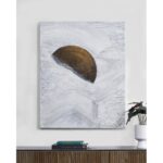 Creative and minimalist design intertwine in this hand-painted piece of art, allowing it to flow within a contemporary or classic interior. Featuring heavy texture and gold accent details, it presents two different stories when seen up close or at a distance. The solid off-white edge is all it needs for a crisp finish; no frame necessary.