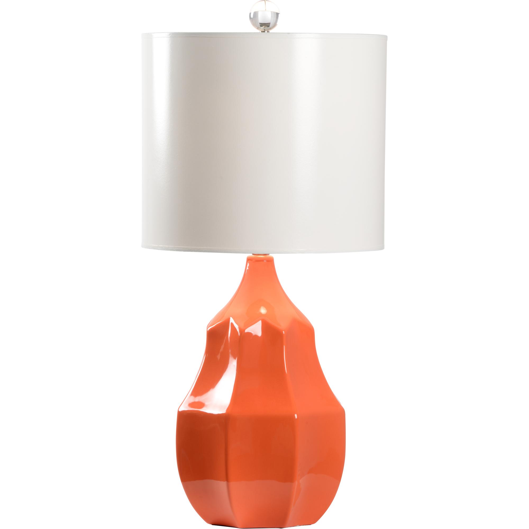 Enliven your home decor with our Soft Glow Lamp. This vibrant orange glazed ceramic features a textured body that reflects light throughout your space. A super white flossy drum shade tops this whimsical table lamp ideal for a bedroom or game room.