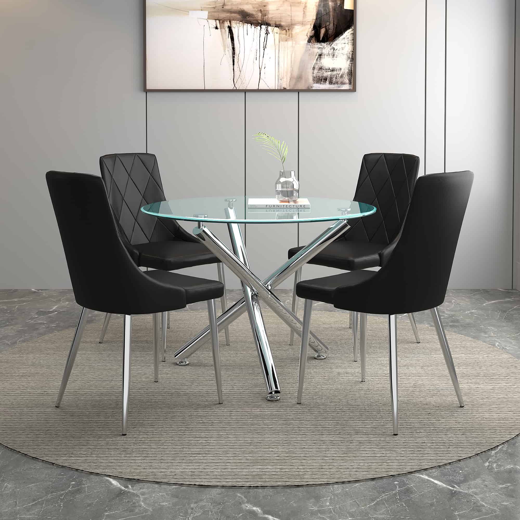 Solara/Devo 5pc Dining Set in Chrome with Black Chair