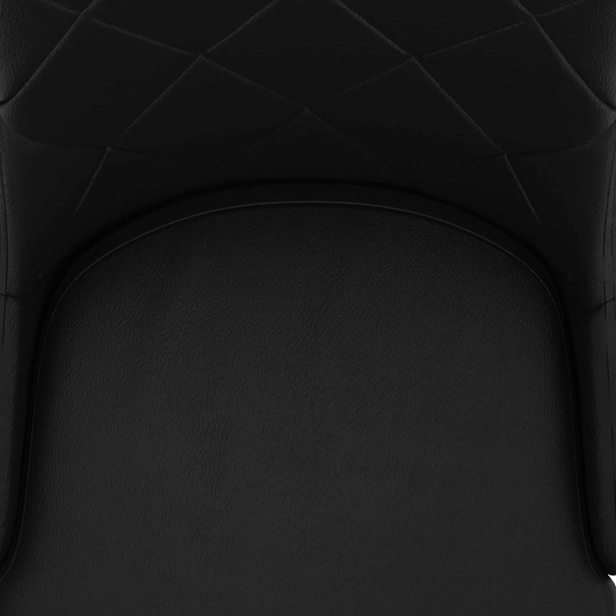 - Comfortable, curved wood seat frame with cushion and faux leather upholstery