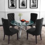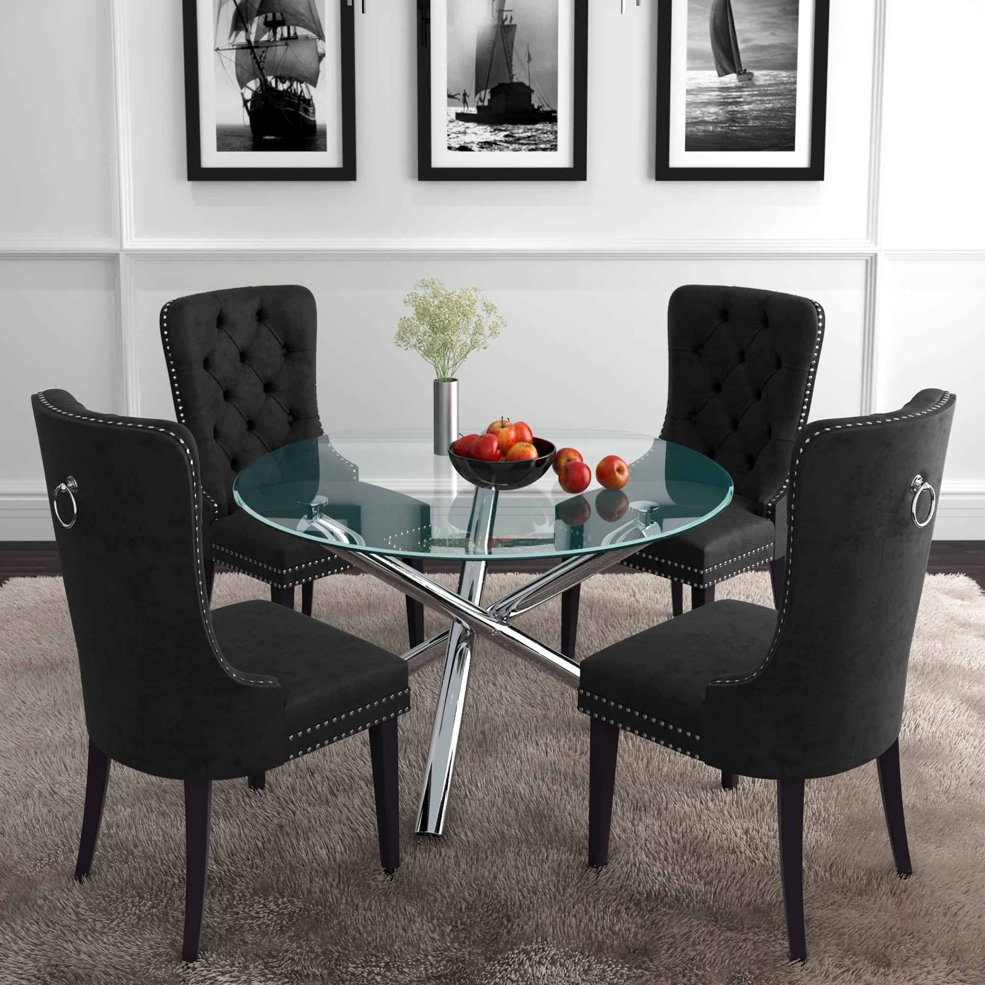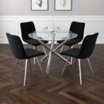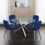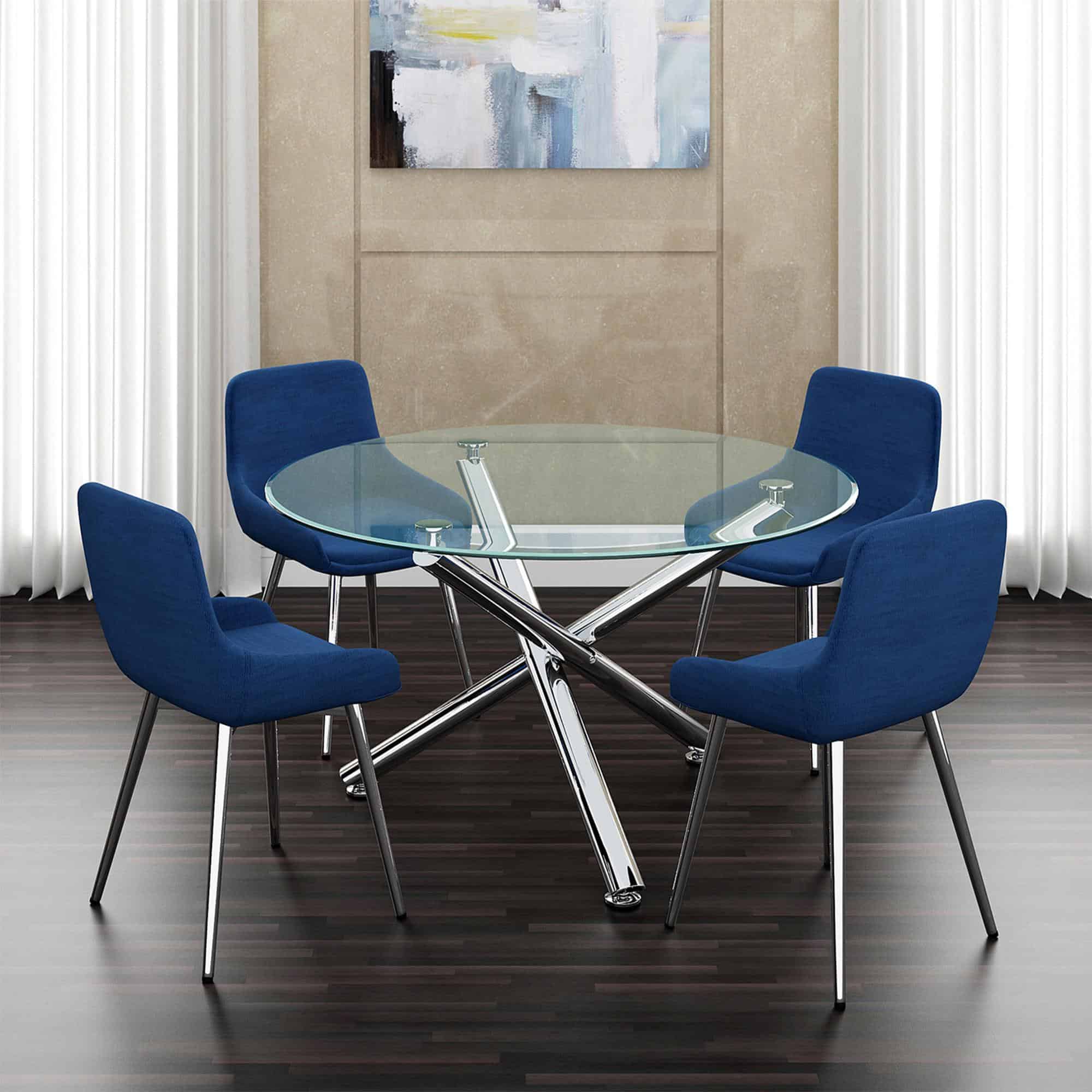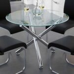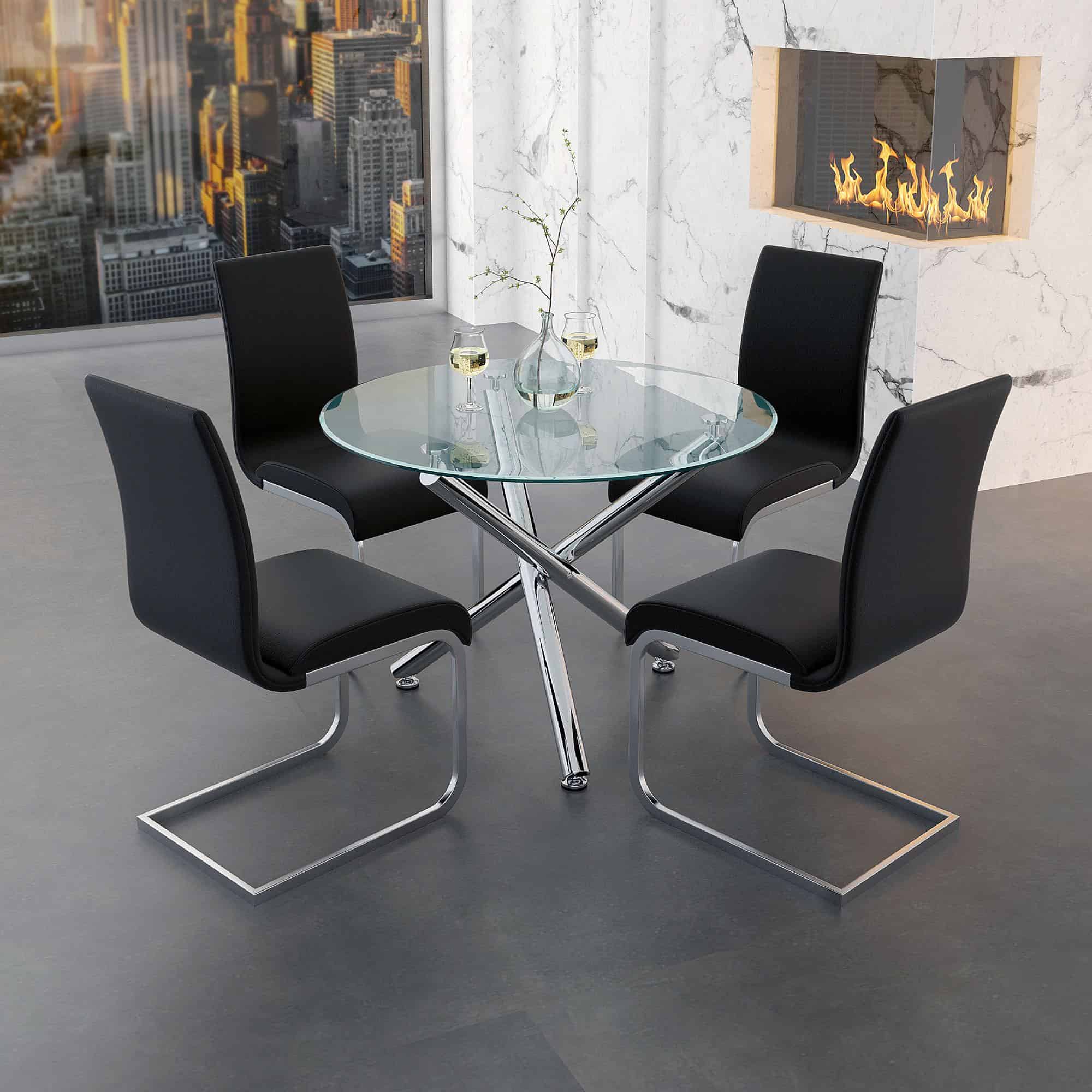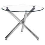 Contemporary beauty that is ideal for small spaces. The clear glass top and airy design create the impression of space. Chromed metal legs provide sturdy support. Great for casual dining.