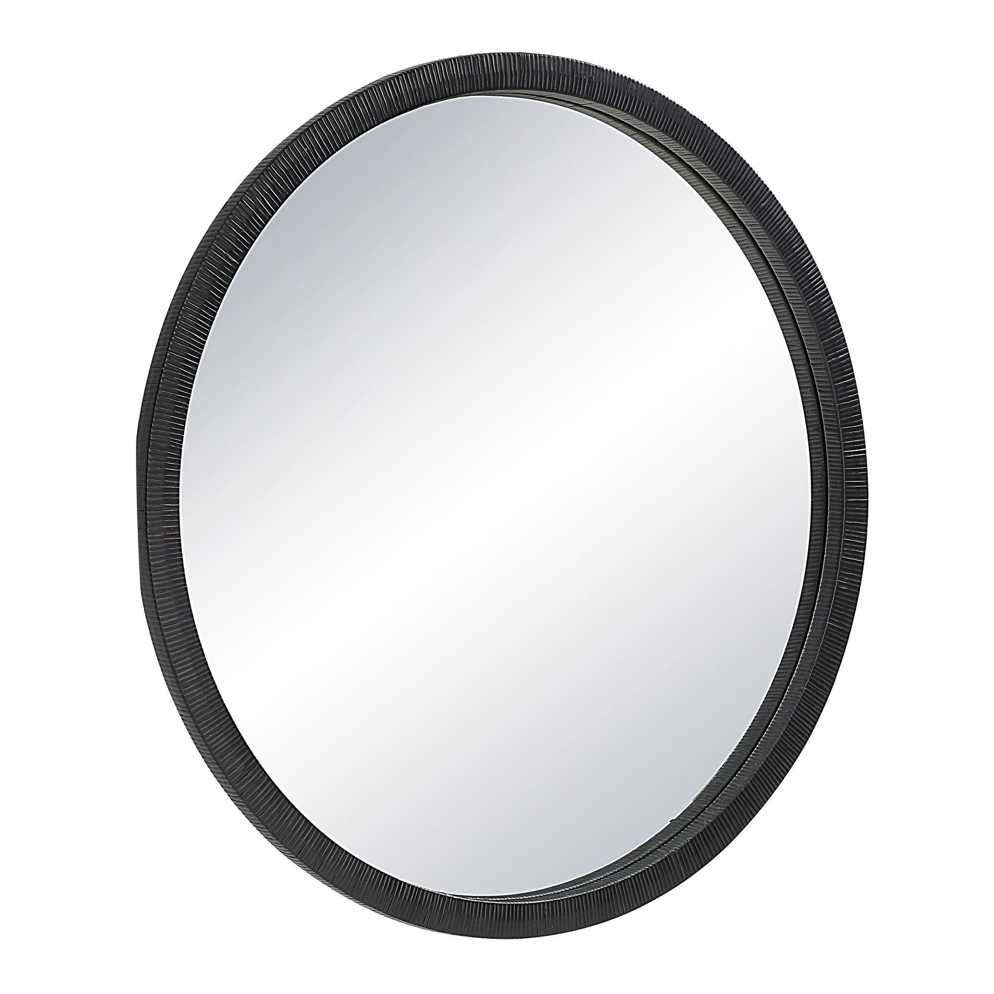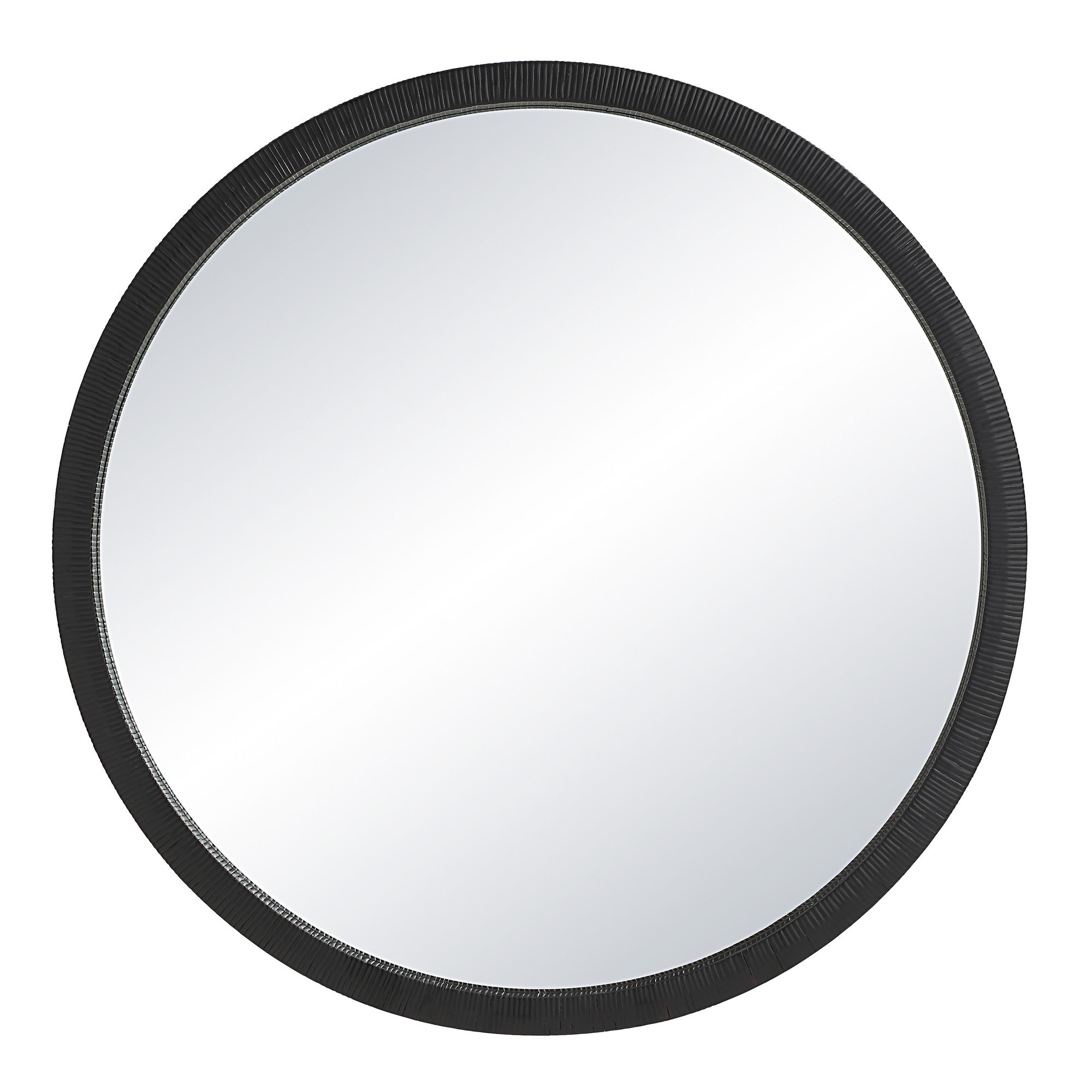 Bring a sophisticated yet laid back look to any space with the Solo round wall art mirror. Featuring a rattan wrapped frame with a black-painted finish, it’s loaded with texture and drama. Offering a generous 48” diameter, it’s perfectly sized for creating a large-scale impact in your design project. D-ring hardware makes installation a breeze so as soon as this mirror arrives to its new space, it’s up and ready for action. Hang it over a fireplace, in an entryway, in a bedroom, or anywhere your creative mind dictates.