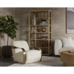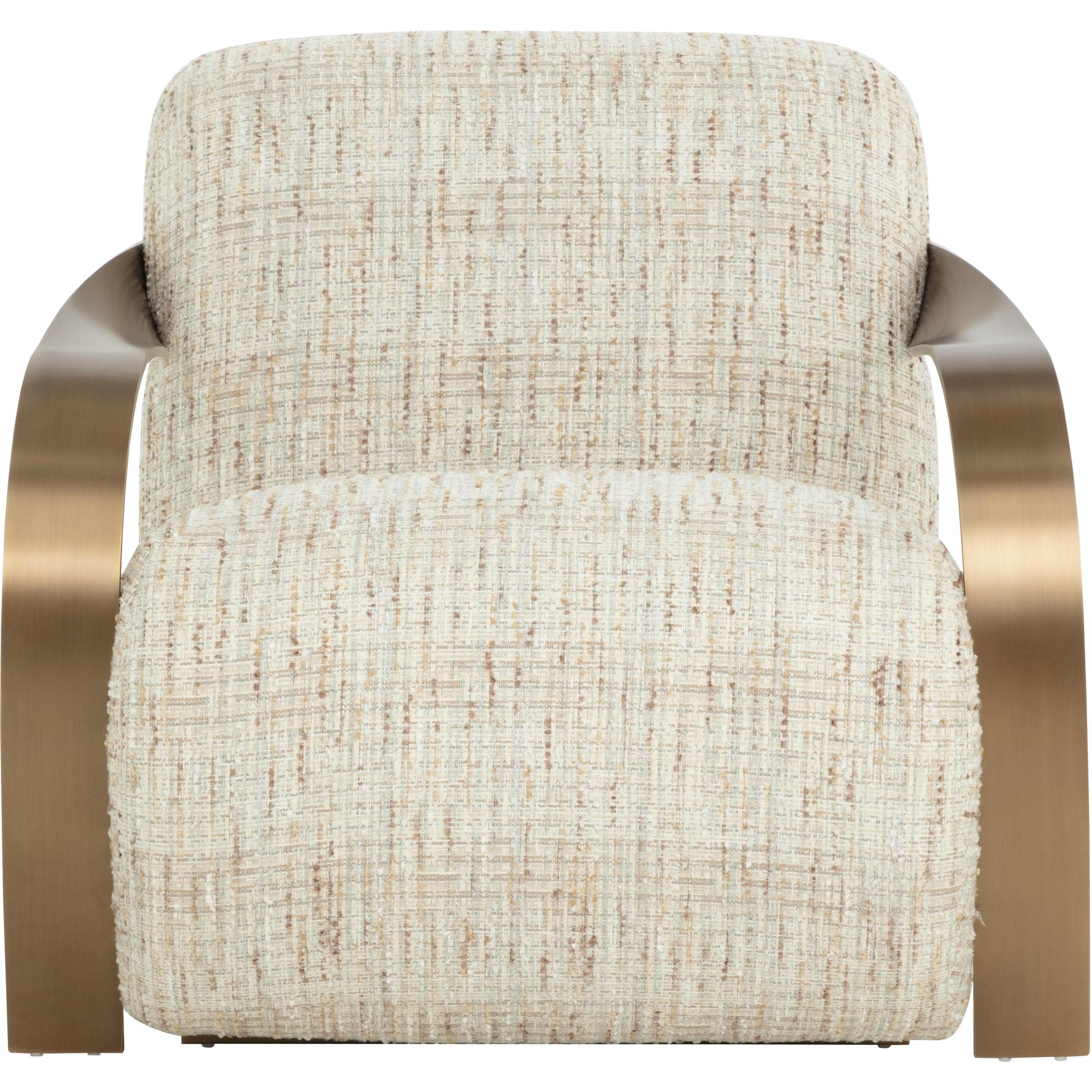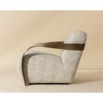 The Sonesta Lounge chair is an incredible achievement in sculptural appeal and mid-century wonder. With twisted brass metal arms and upholstered in haute cobblestone fabric, this brilliant lounge chair is a bold and shapely masterpiece.