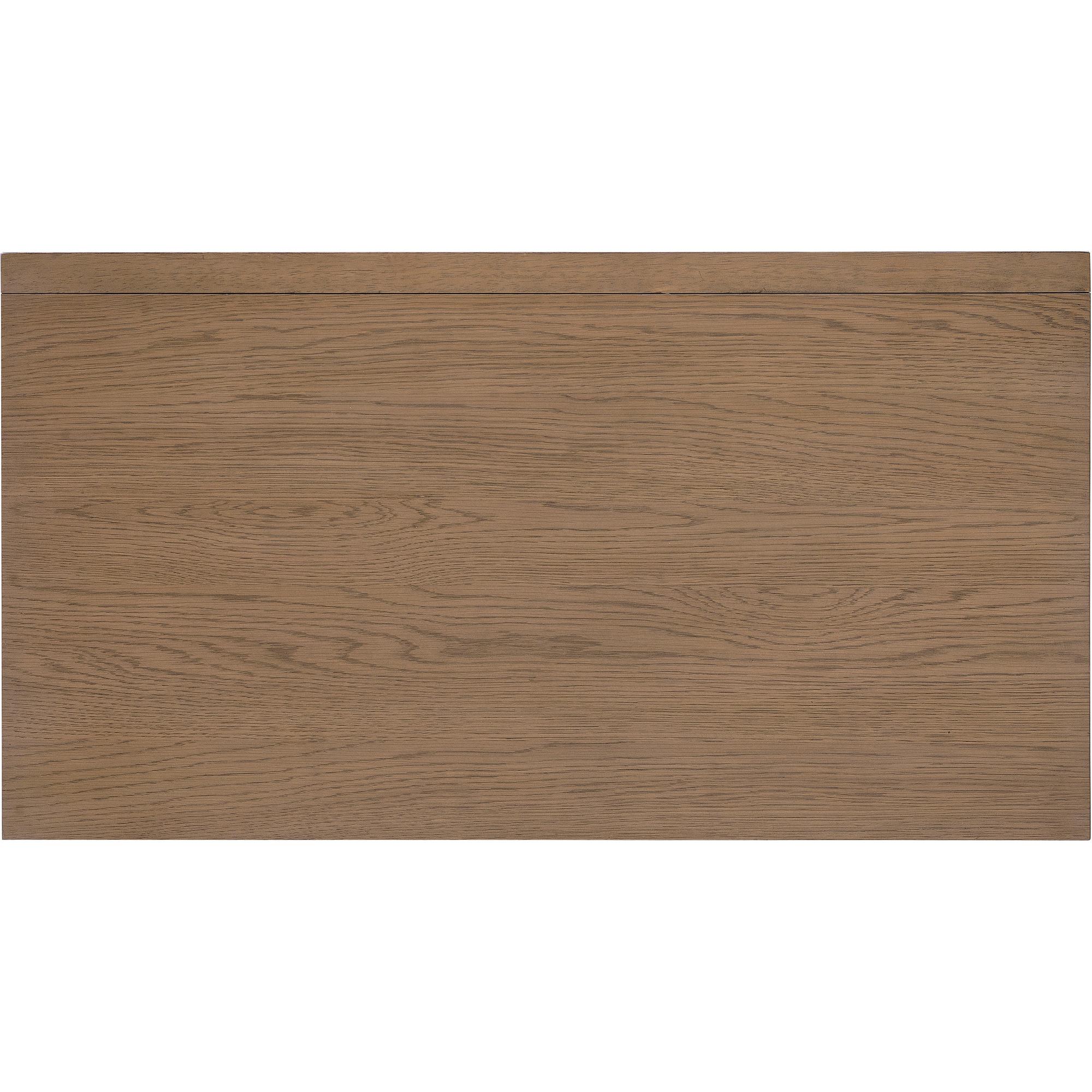 Finish: Wren: quartered and cathedral-cut white oak veneers in a light earthen-toned finish. Satin-finished knobs and metal.