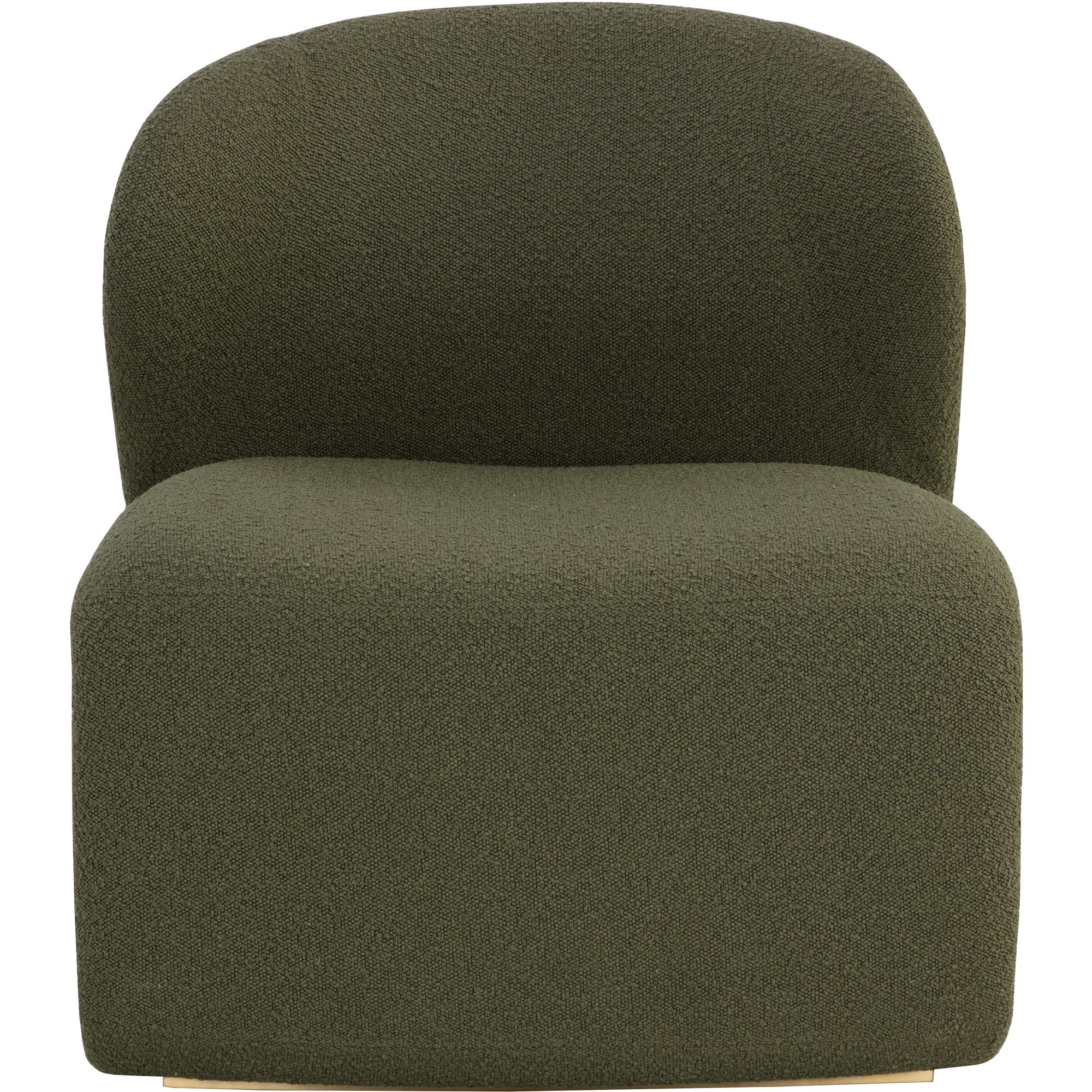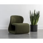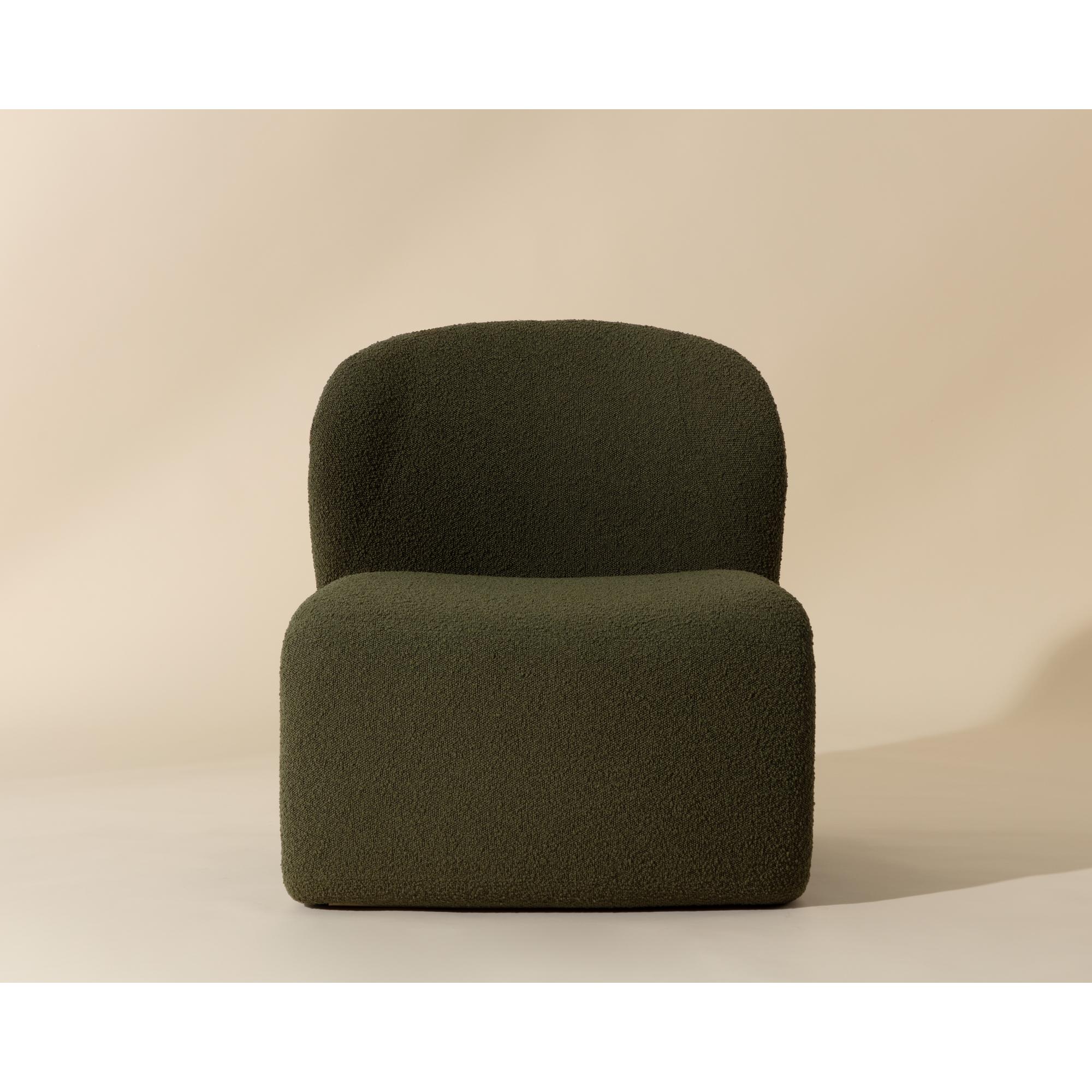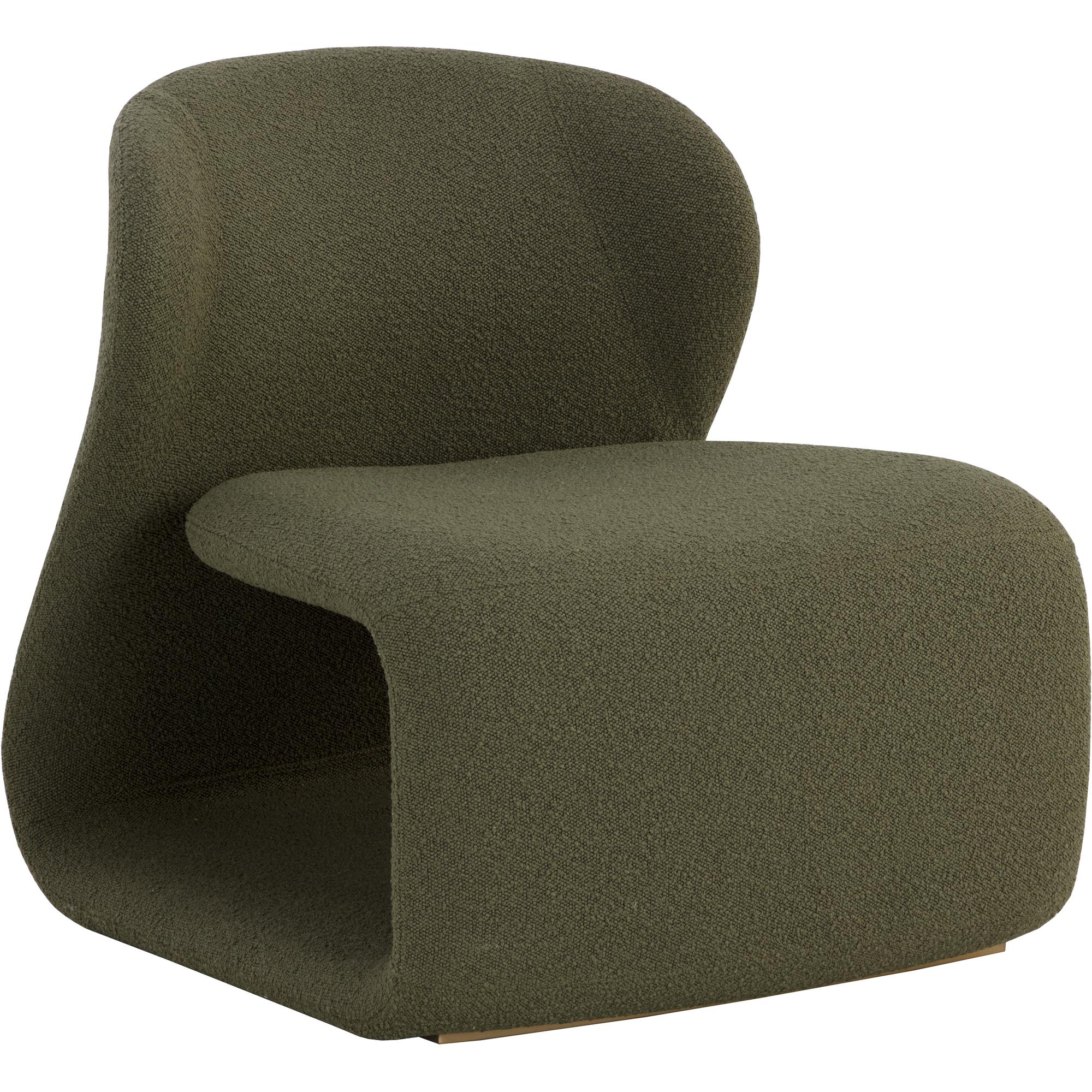 The Sophiene Lounge Chair is uniquely sculpted for exceptional comfort. Fully upholstered in copenhagen olive boucle fabric for a cozy accent to any contemporary living space.