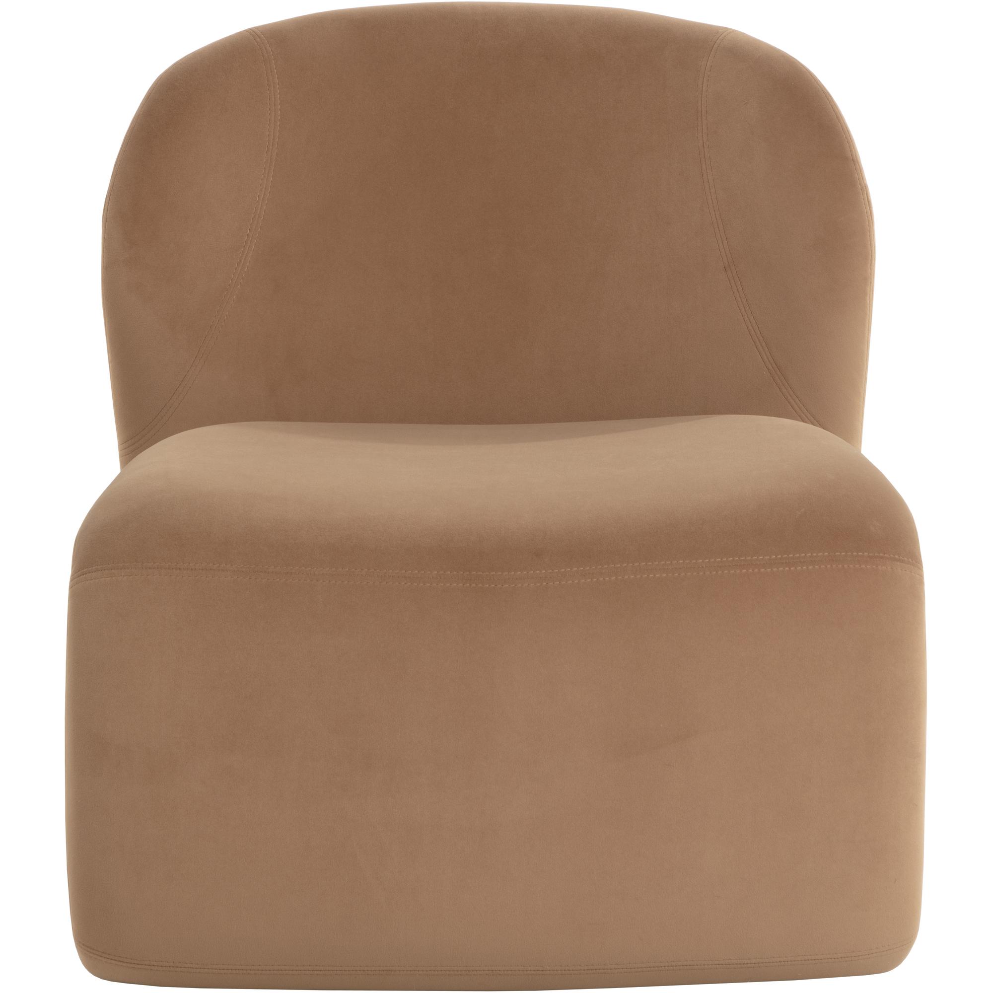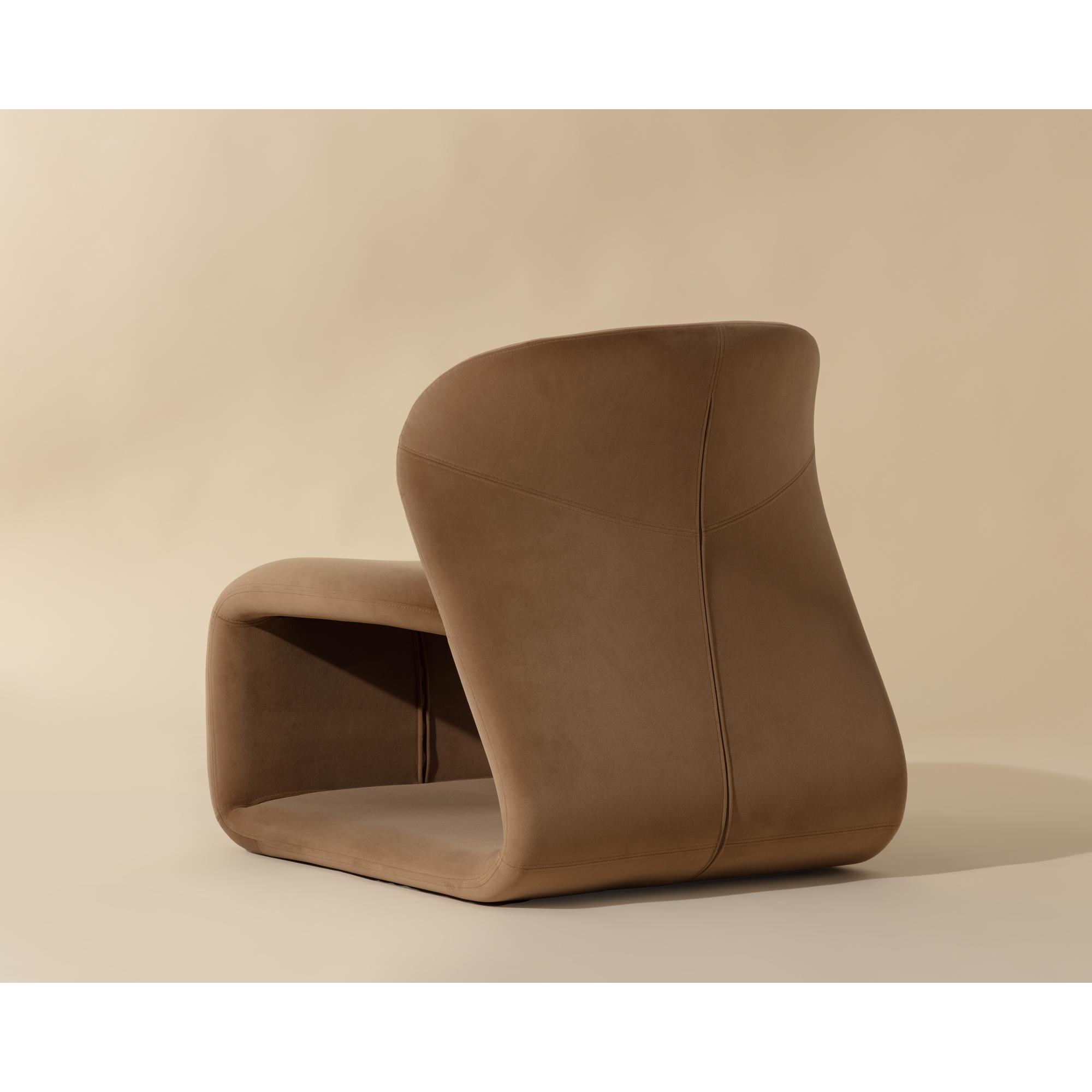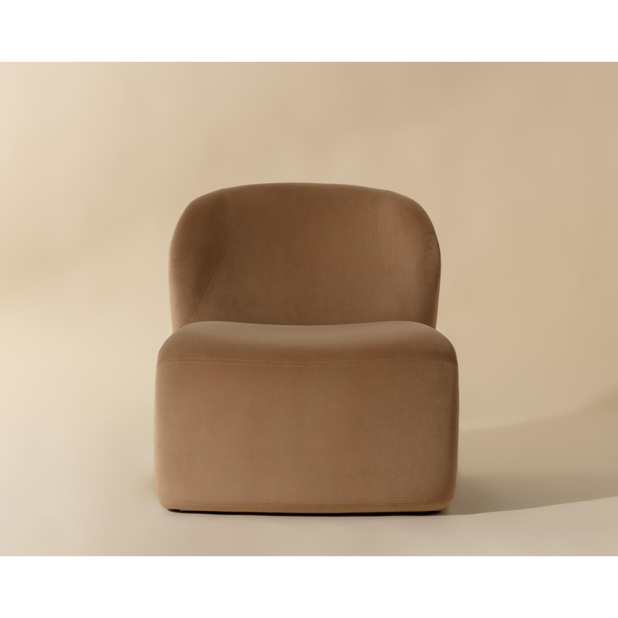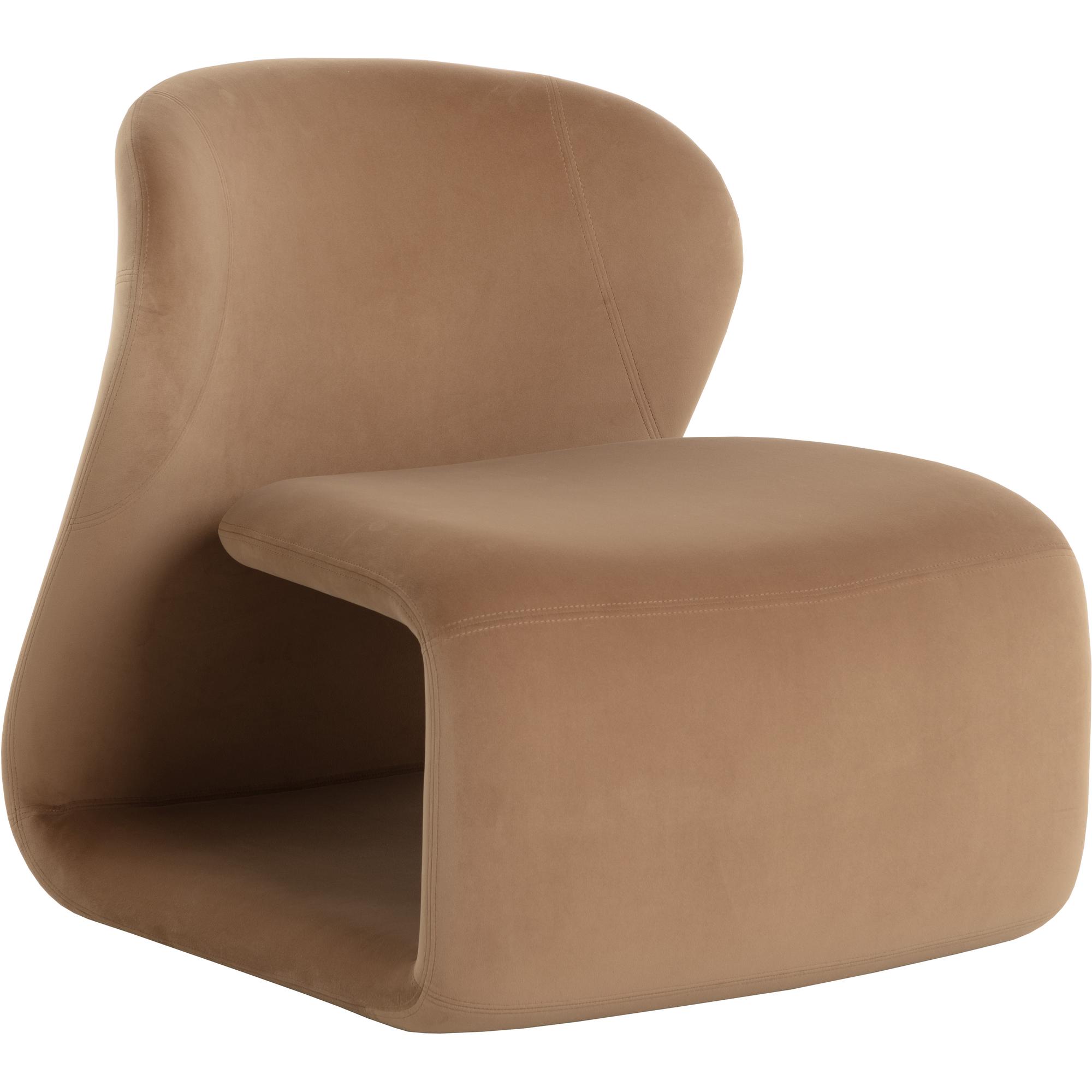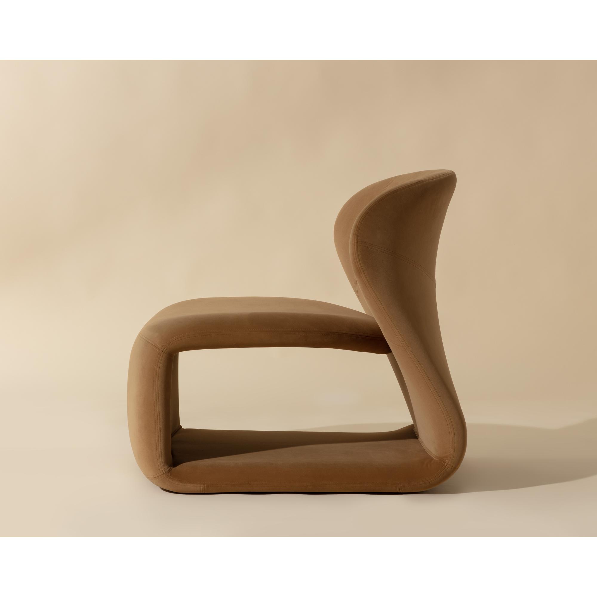 The Sophiene Lounge Chair is uniquely sculpted for exceptional comfort. Fully upholstered in smooth kona camel fabric for a cozy accent to any contemporary living space.