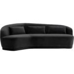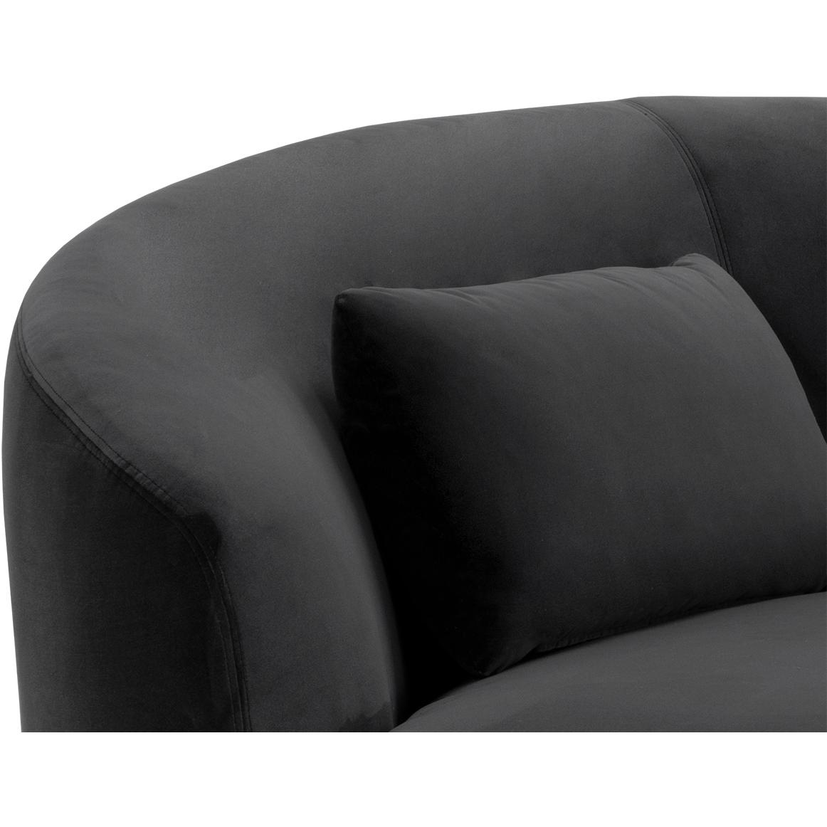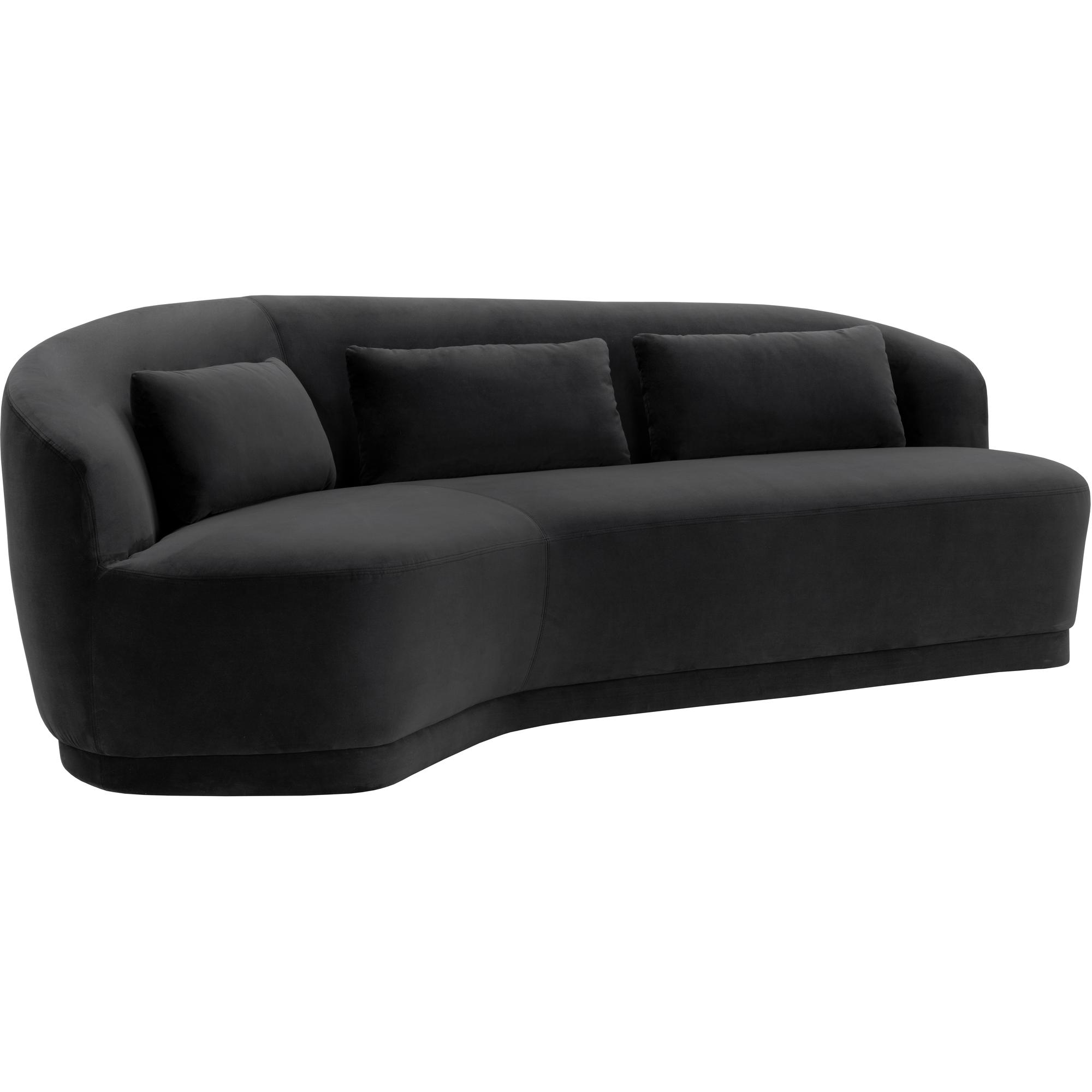 Boasting a design that is all about that curve appeal, this marvelous sofa will add shape to any space. Stocked in shadow grey fabric and completed with a wooden frame. Includes three pillows.