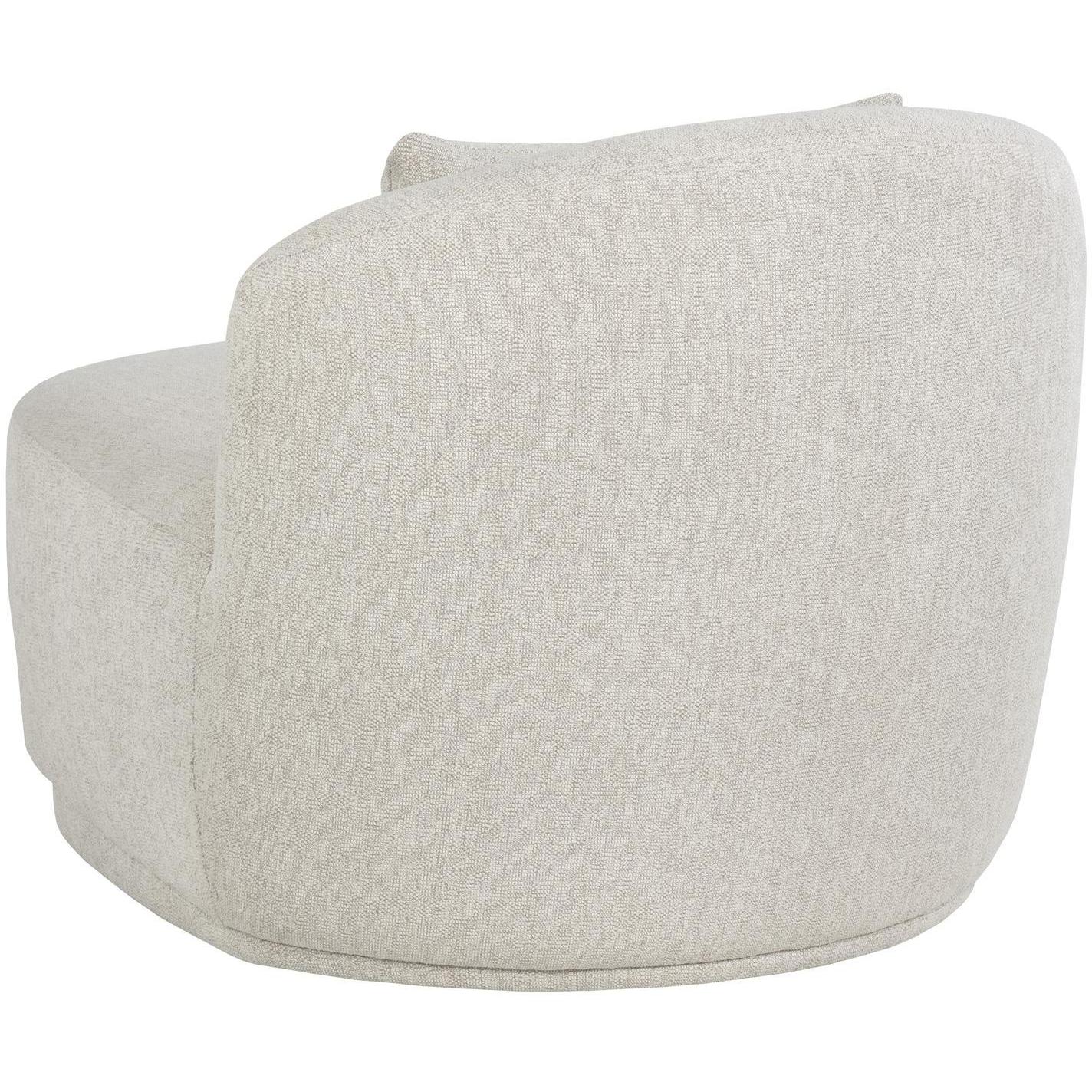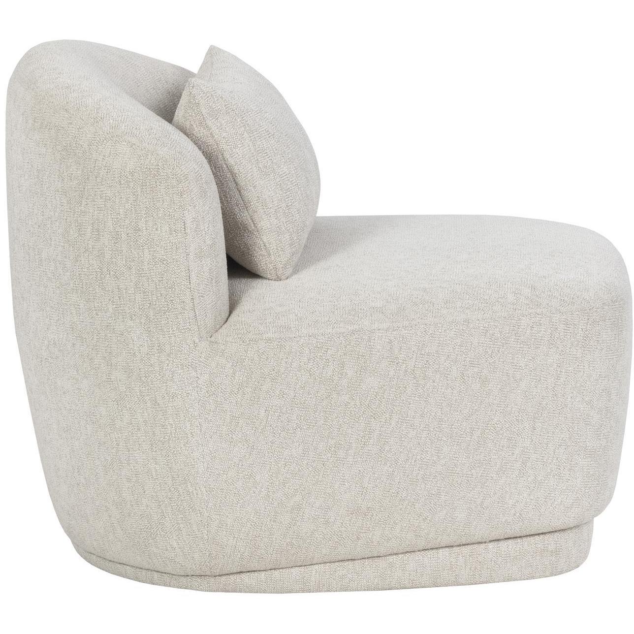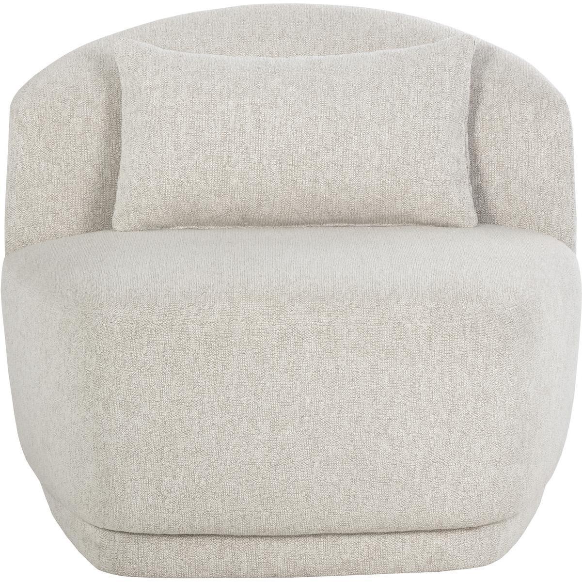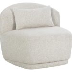 Boasting a design that is all about that curve appeal, this marvelous swivel armless chair will add shape to any space. Stocked in dove cream fabric and completed with a wooden frame. Coordinating sofa and ottoman also available.