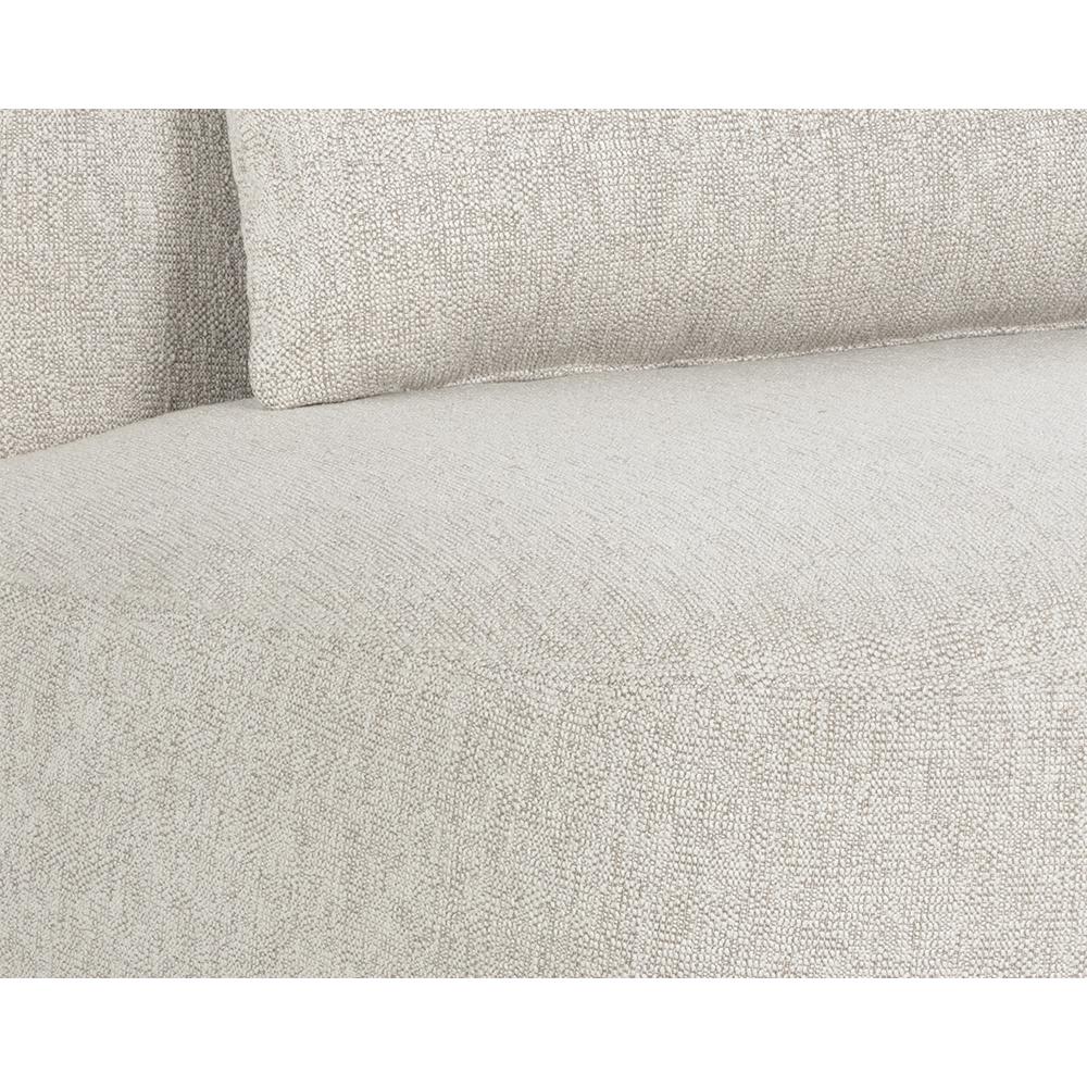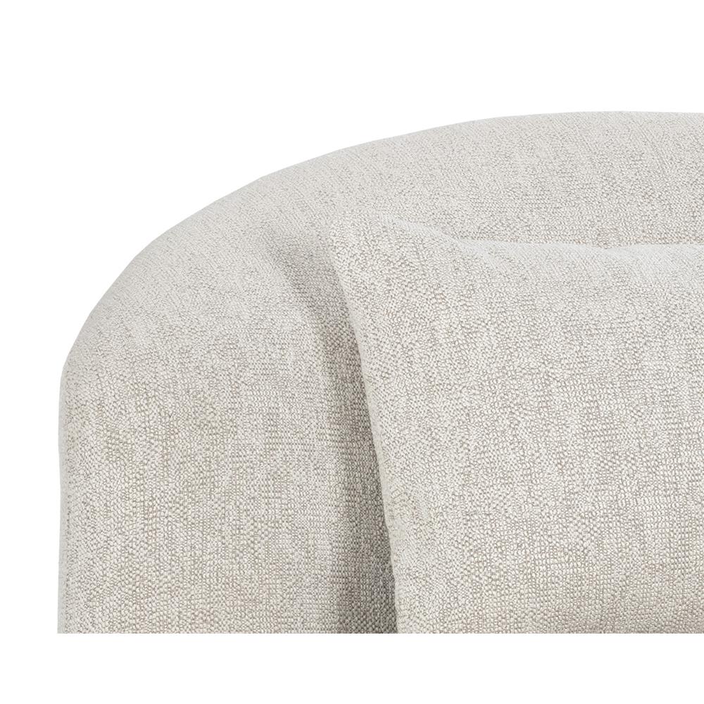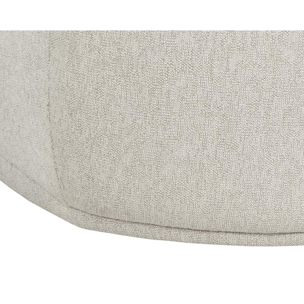 Boasting a design that is all about that curve appeal, this marvelous swivel armless chair will add shape to any space. Stocked in dove cream fabric and completed with a wooden frame. Coordinating sofa and ottoman also available.