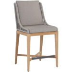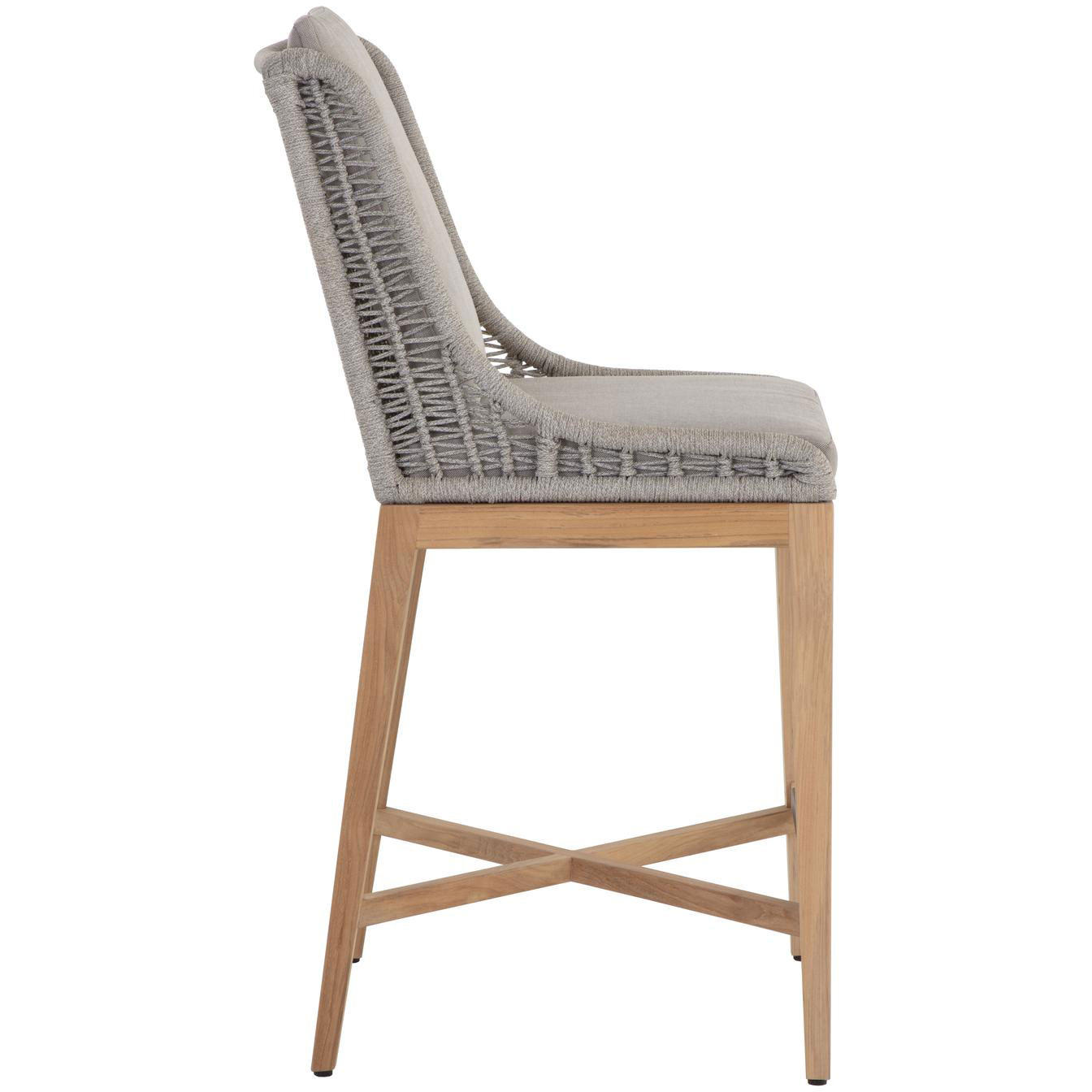Create a modern outdoor dining space with this beautiful counter stool. Features a durable palazzo taupe fabric seat and greymix weave exterior with a natural teak wood base. Suitable for indoor and covered outdoor spaces.