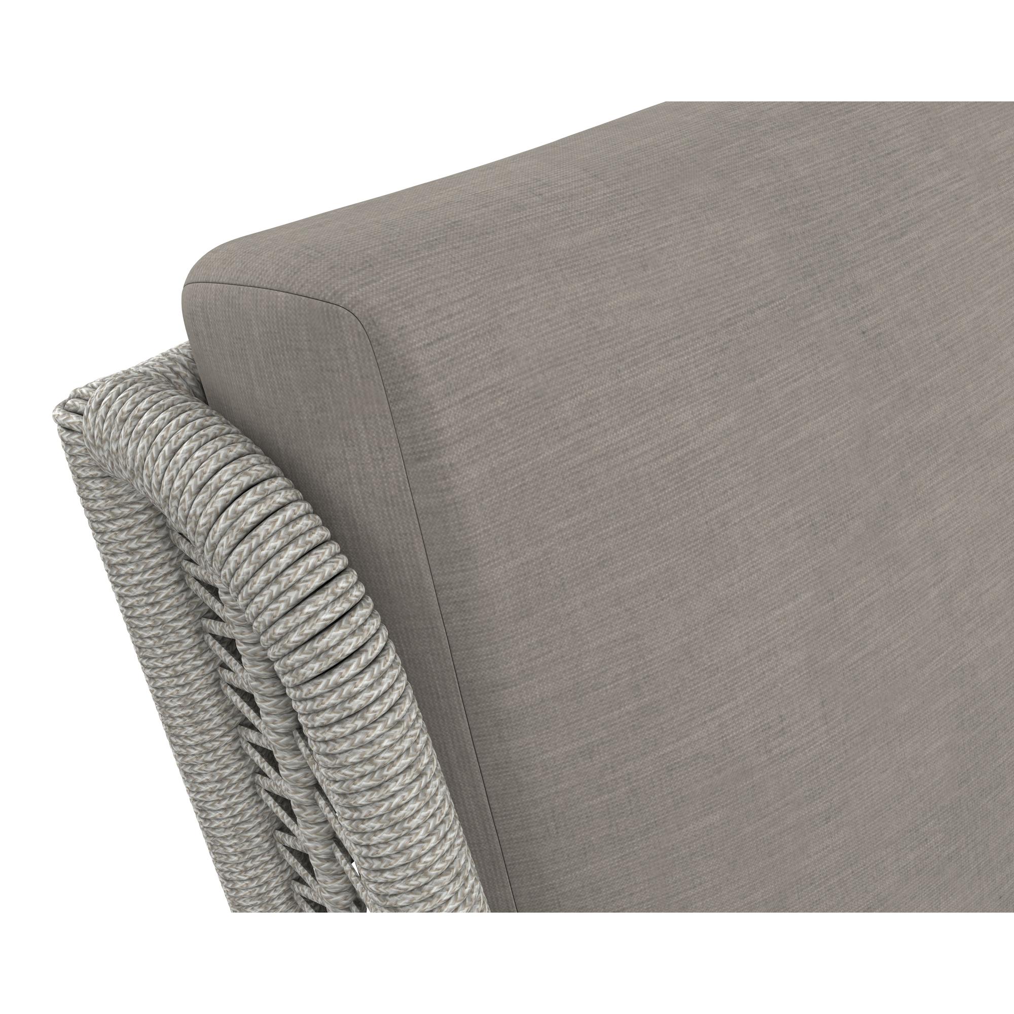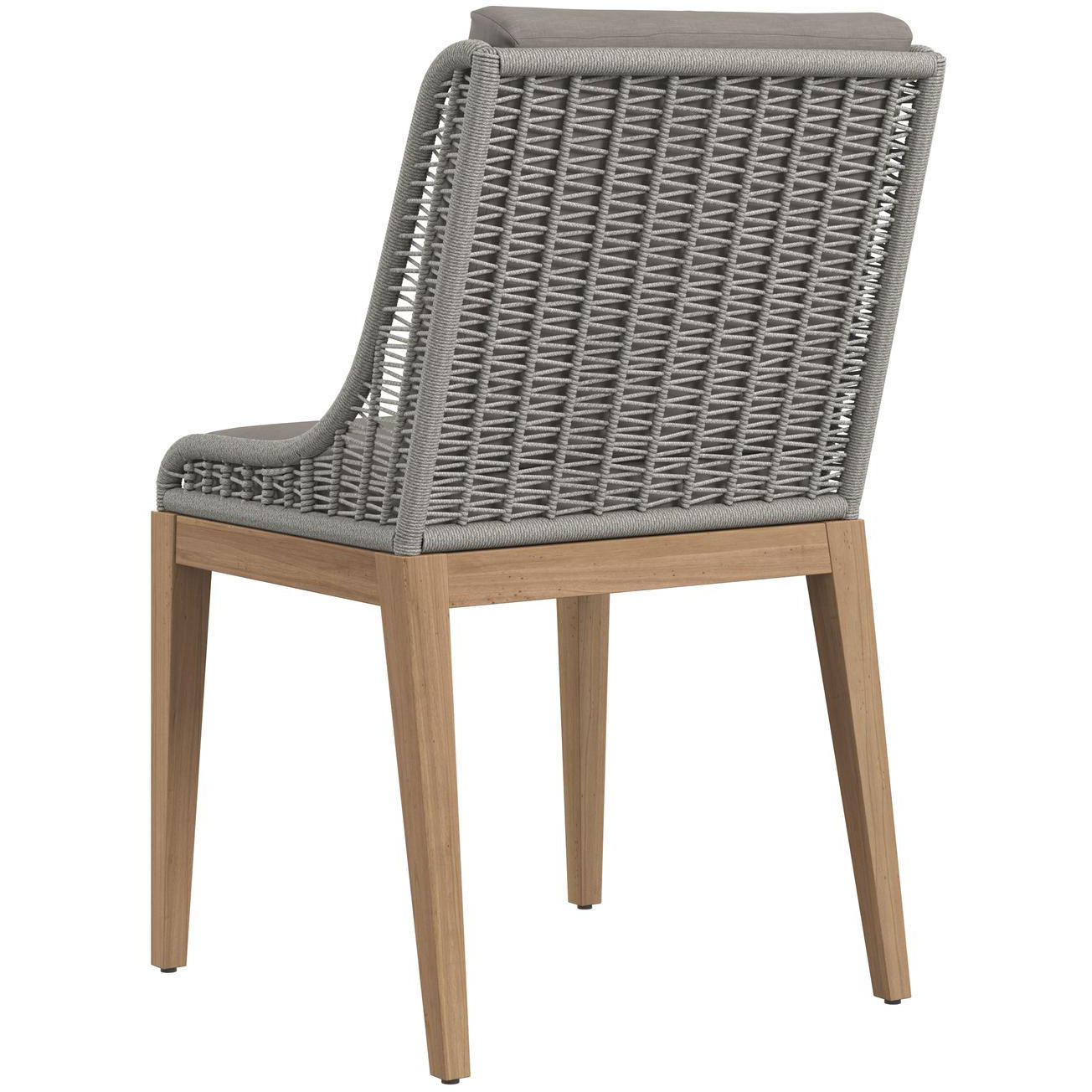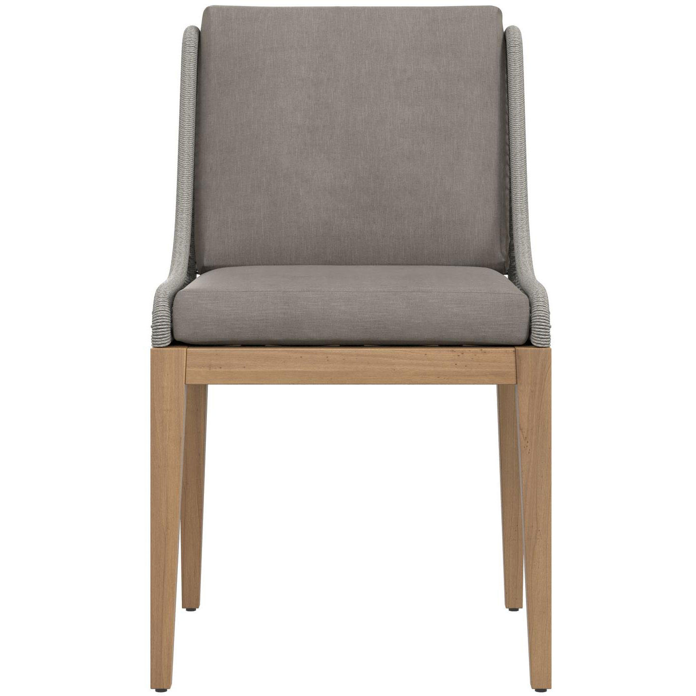 Create a modern outdoor dining space with this beautiful outdoor dining chair. Features a palazzo taupe fabric seat and greymix weave exterior with a natural teak wood base. Suitable for indoor and covered outdoor spaces.