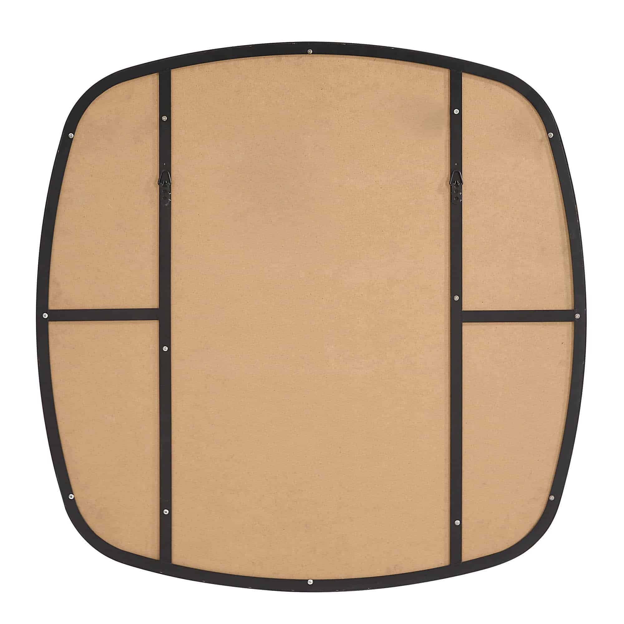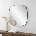 The elegant, polished mirror gets a touch of personality through uniquely rounded edges in this framed design. Set in an entryway space, this mirror offers one a spot to check their reflection before coming and going every day. Thanks to its matte black iron frame, this mirror easily integrates into many interior styles from the industrial and contemporary to the mid-century modern.