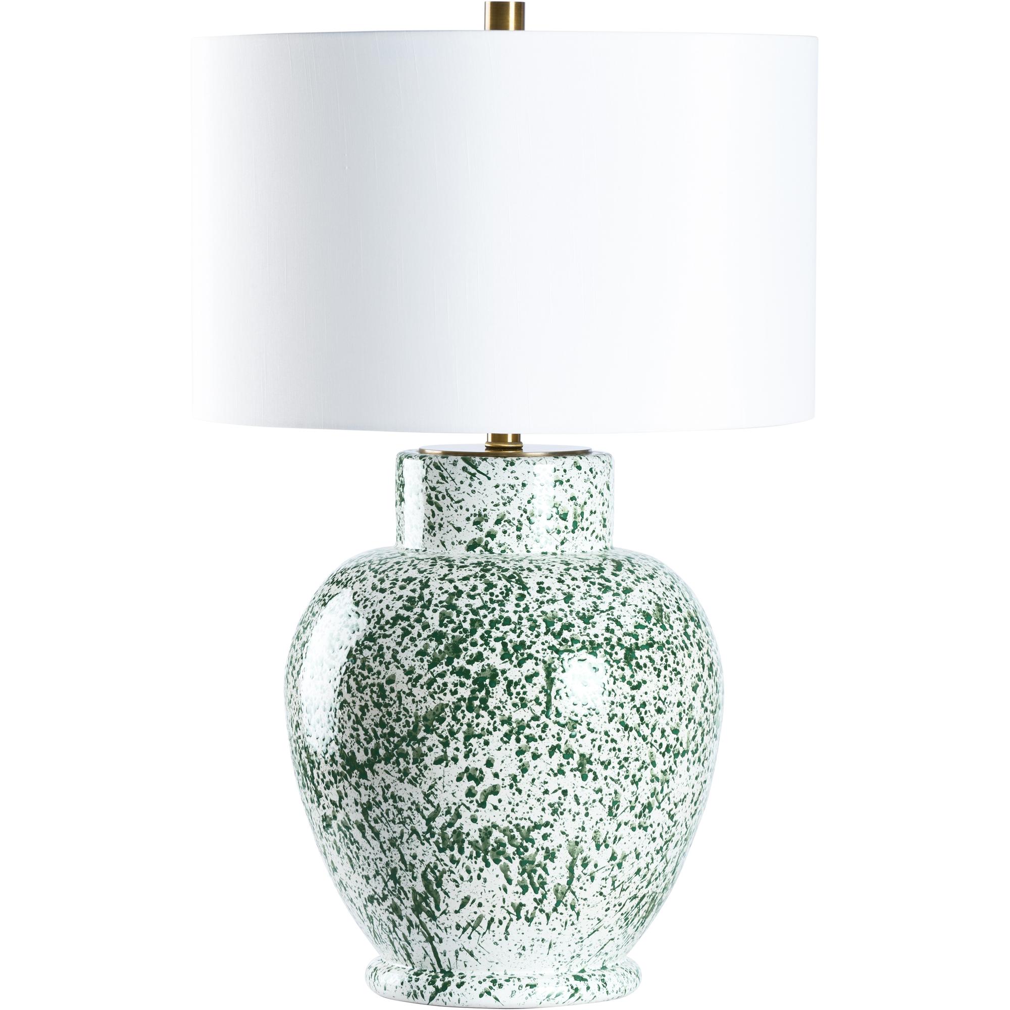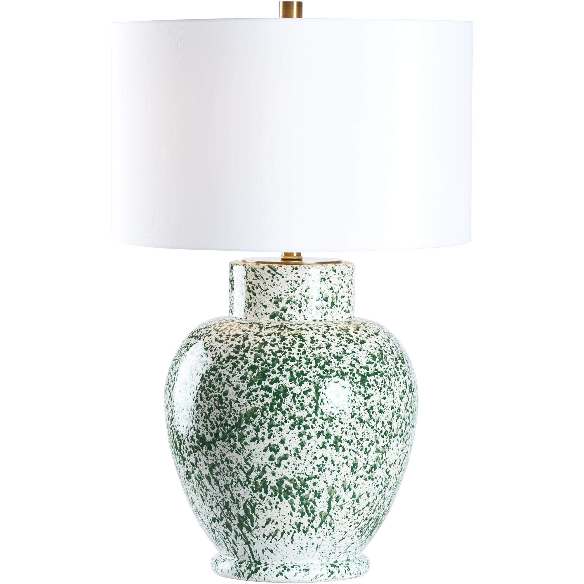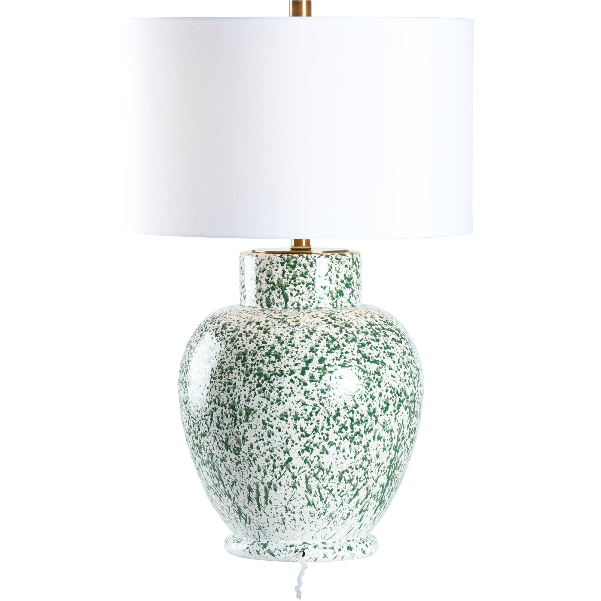This ceramic lamp showcases a spatter green pattern, adding a touch of artistic flair to its smooth, curved form. The lively design brings a fresh, organic feel that effortlessly brightens up any room.