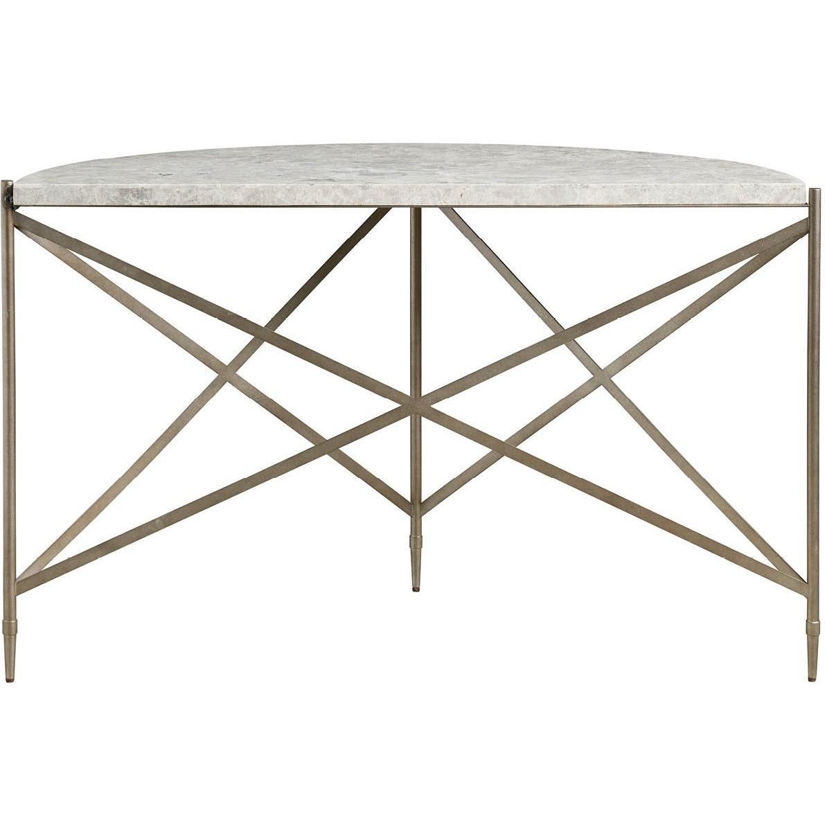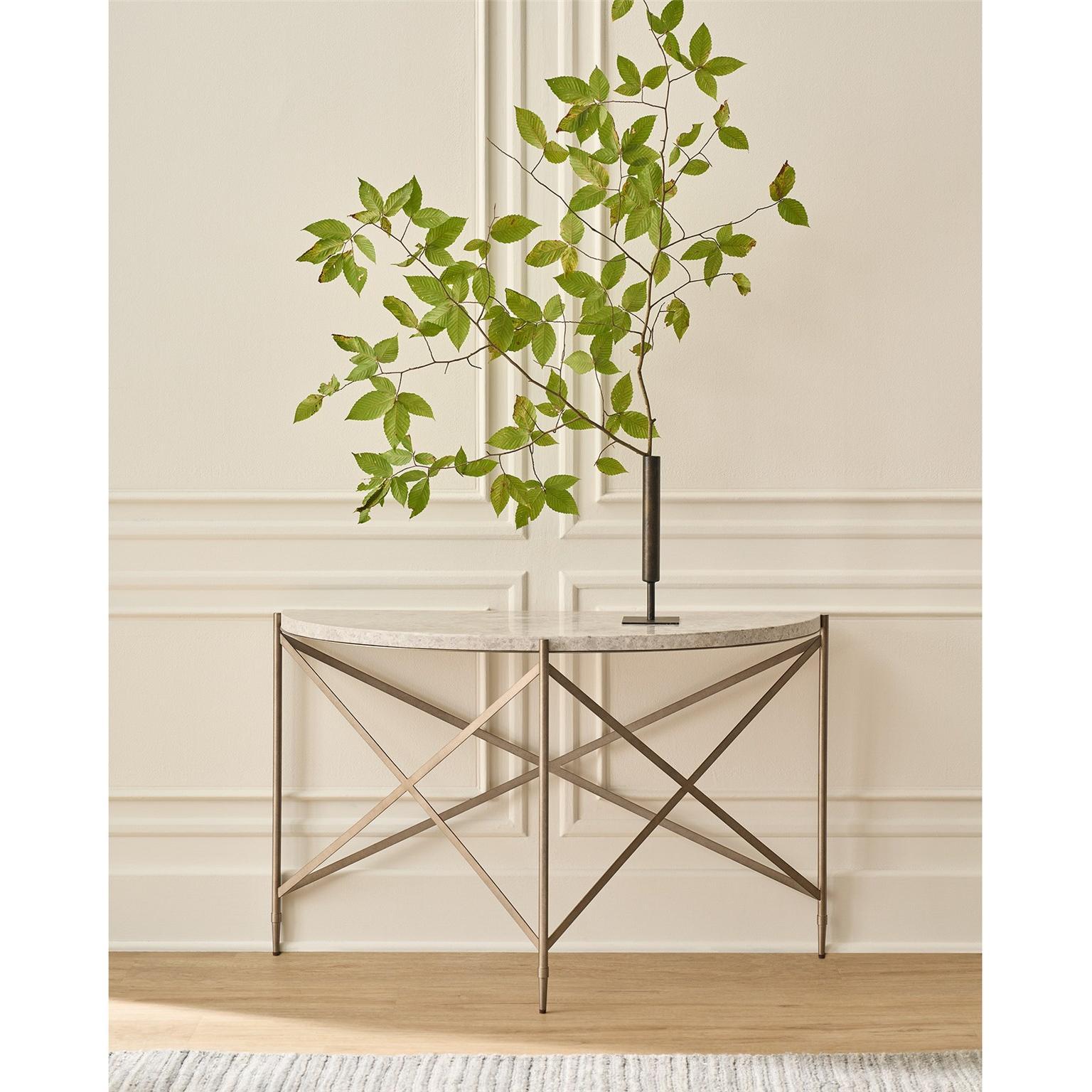 The Spier Console Table is a captivating blend of modern luxury and timeless elegance. Its sleek stone top, paired with a geometrically intricate gold base, creates a striking visual contrast. This sophisticated piece is a perfect addition to any entryway or living room, adding a touch of glamour and sophistication.