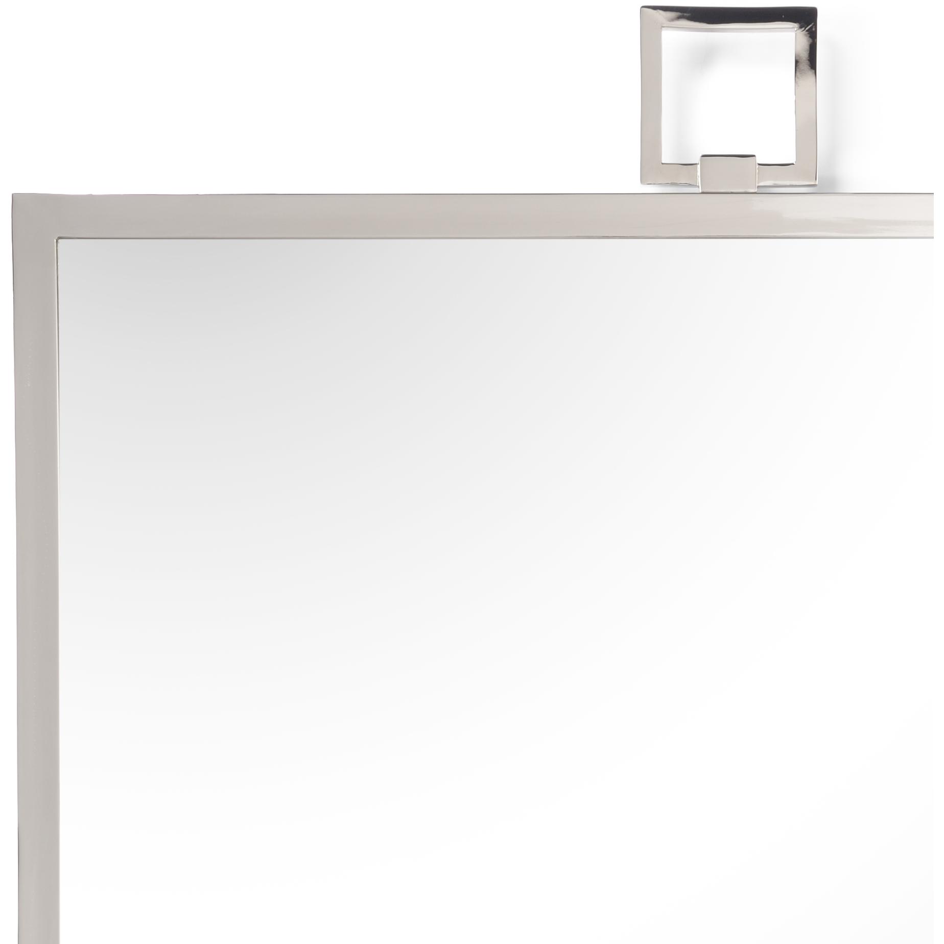 Enhance your space while adding function and beauty with our square mirror. Featuring an iron frame with a sleek polished nickel finish, this modern style mirror blends effortlessly with any design. This 36″ wall mirror can reflect light and your decorative style when hung over a console in the foyer or chest in the living area.