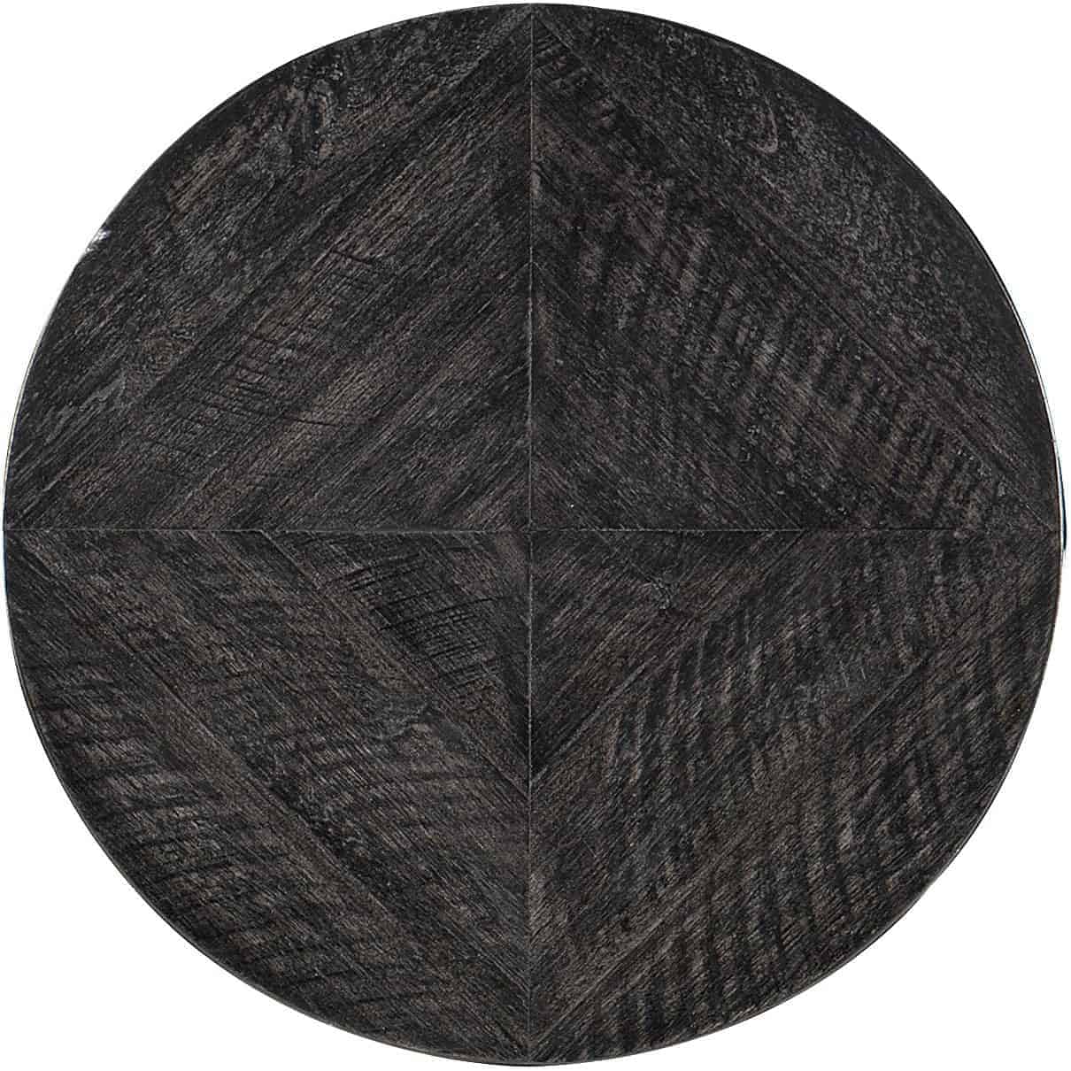 - Finish: Black finish with brushed pewter metal and distressing
