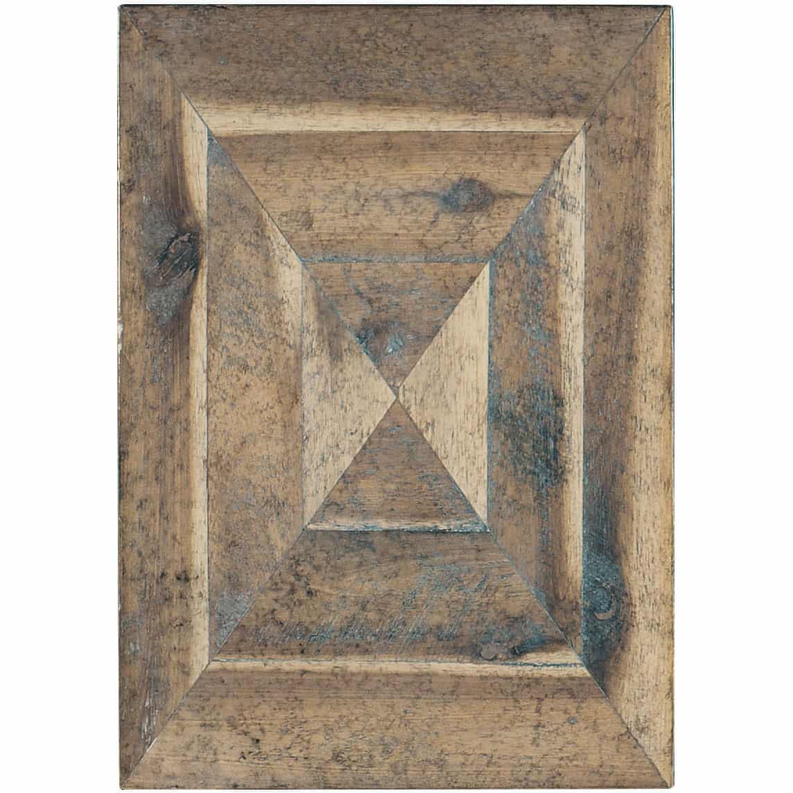 - Finish: Light natural finish with antique bronze metal finish and distressing