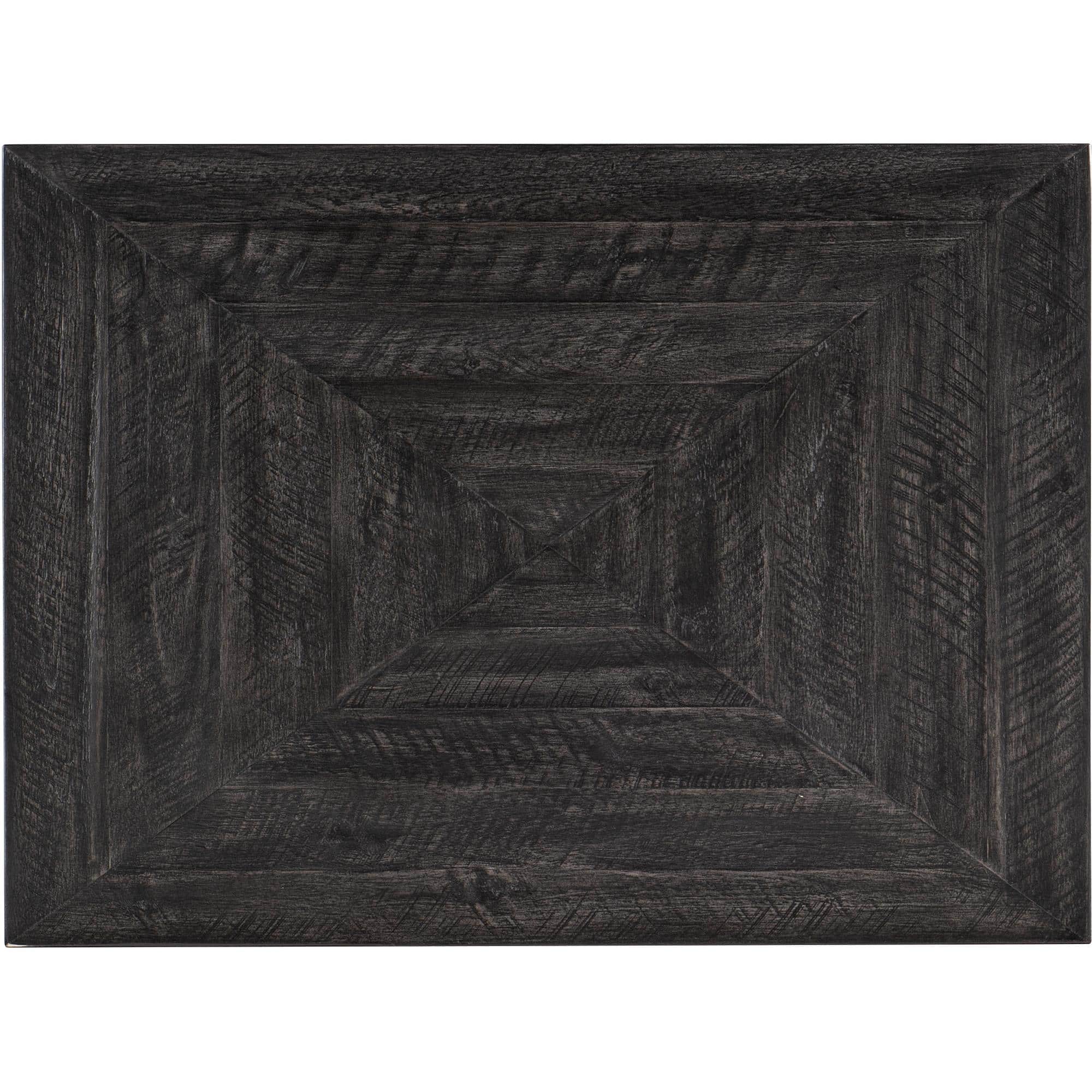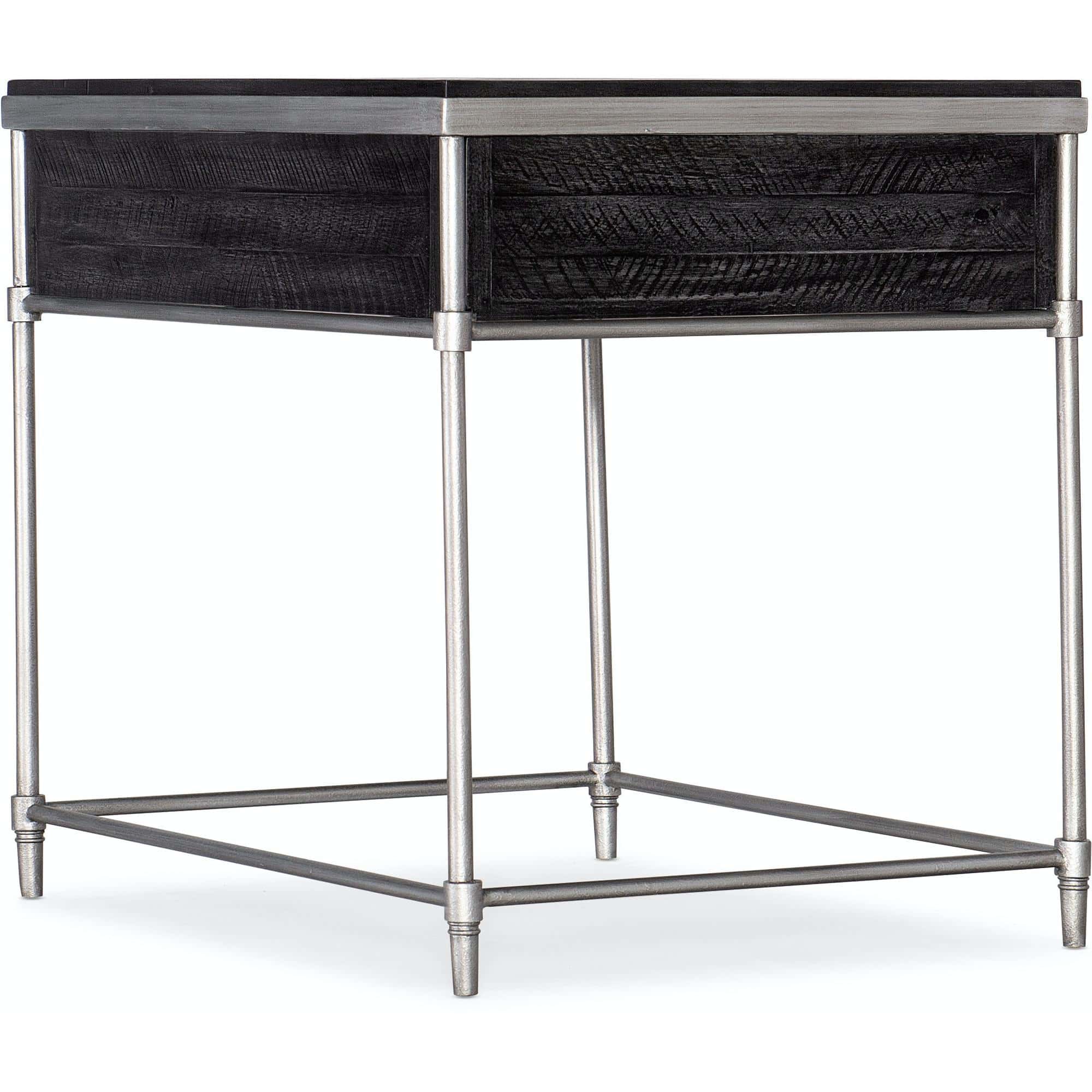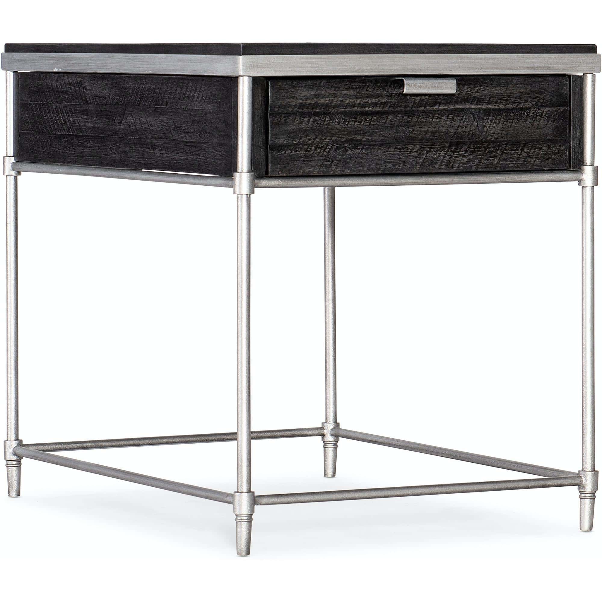 - Finish: Black finish with brushed pewter metal and finger pull with distressing