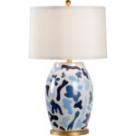 Ceramic lamp with hand painted blue designs. Designs and colors may vary. Designed by Jamie Merida.