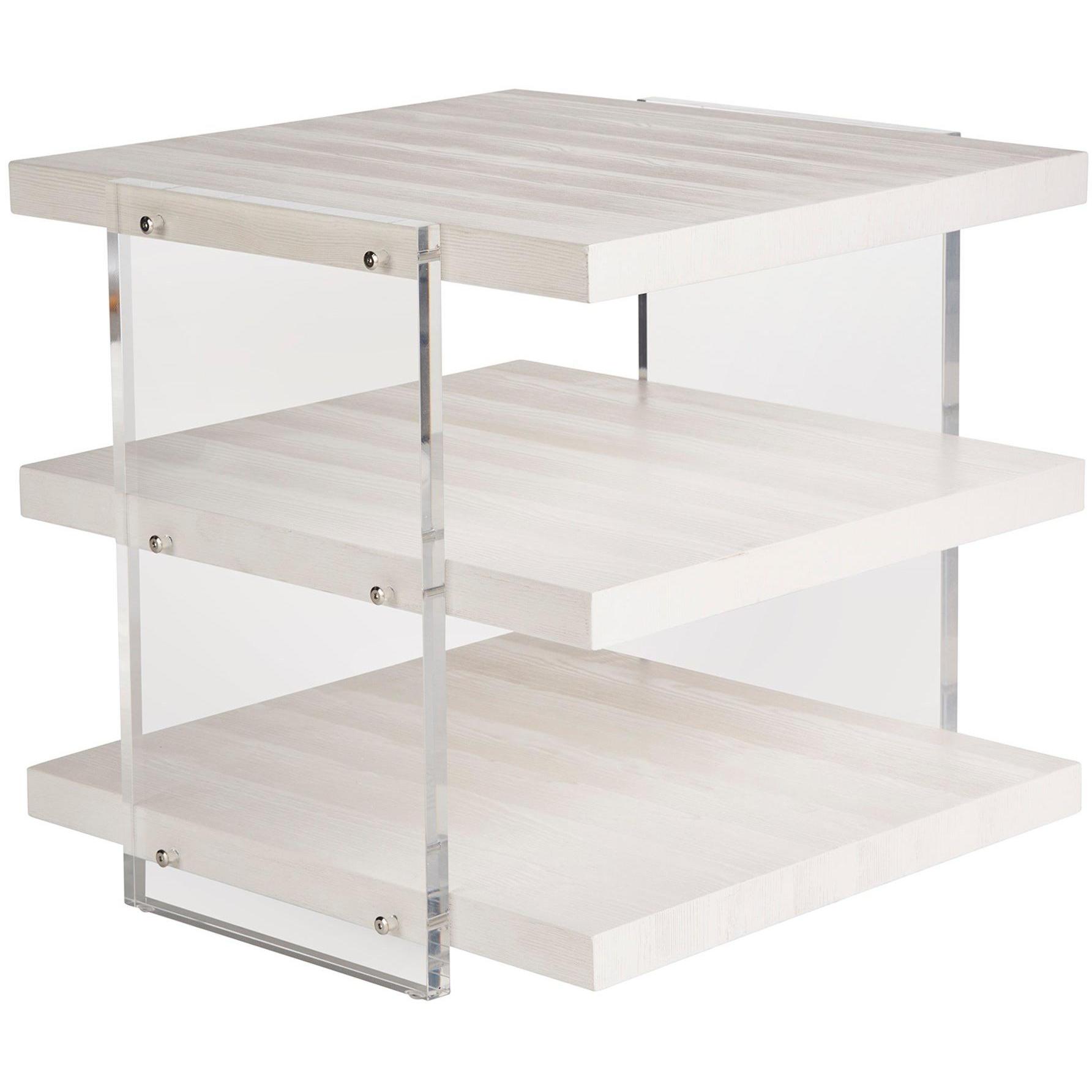 Exuding a forward-thinking appeal, the slender St. Kitts End Table provides the perfect sofa or chair companion with its acrylic legs and sand-hued surfaces.