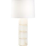 Sophisticated and stunning lamp made of natural alabaster with gold leaf bands. Subtle shading in the stone add to its depth and beauty. Designed by Elizabeth Wicker