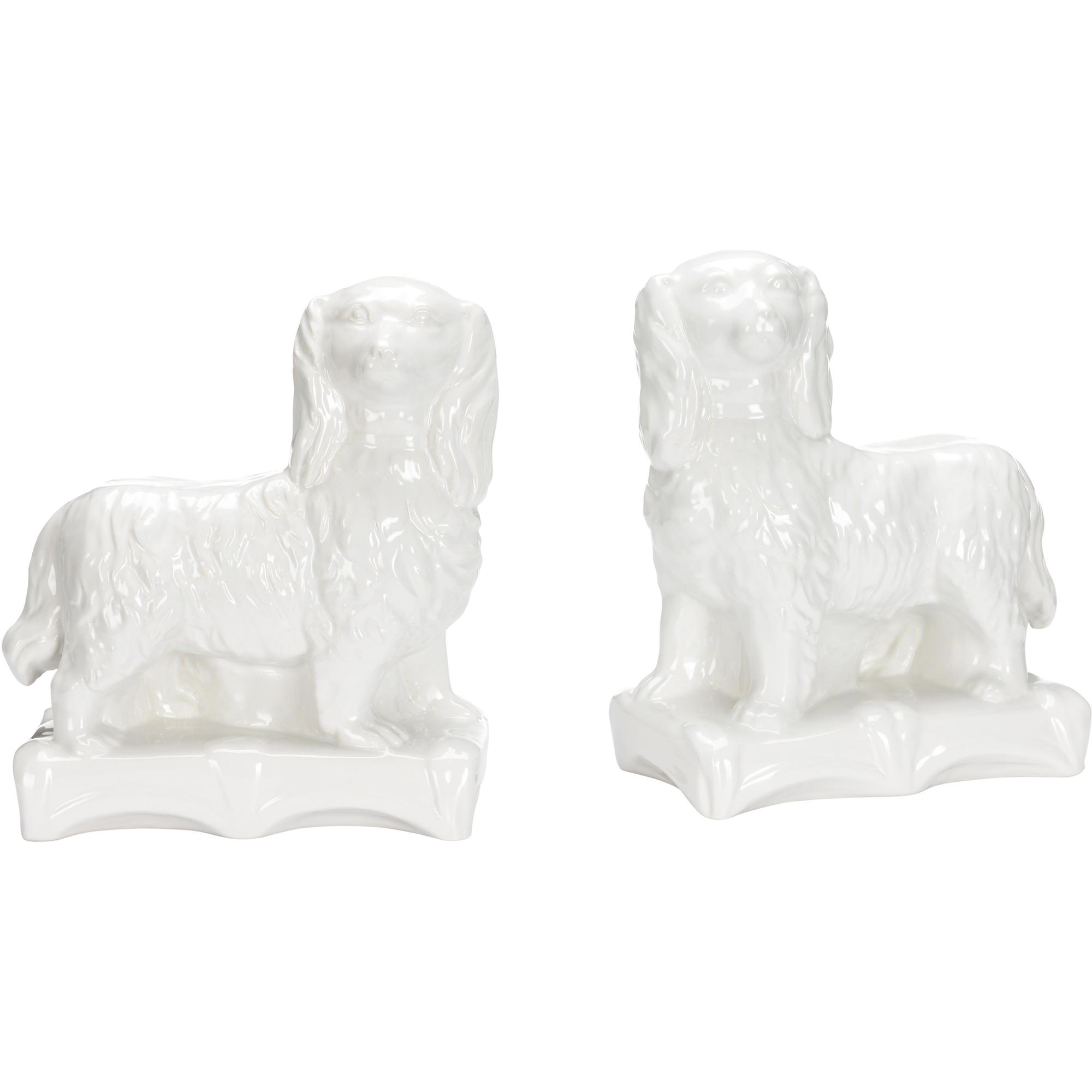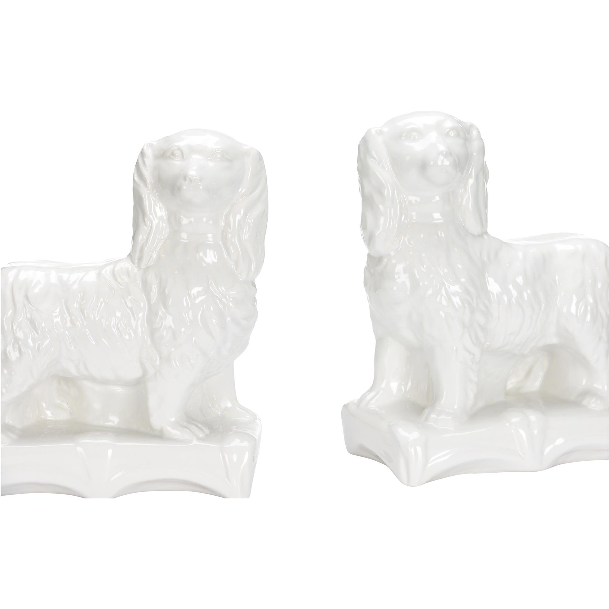 Standing guard on a mantle or shelf, the Staffordshire Spaniels bring a monochromatic color pallet with its white hand glossy fur. Designed by Bill Cain.
