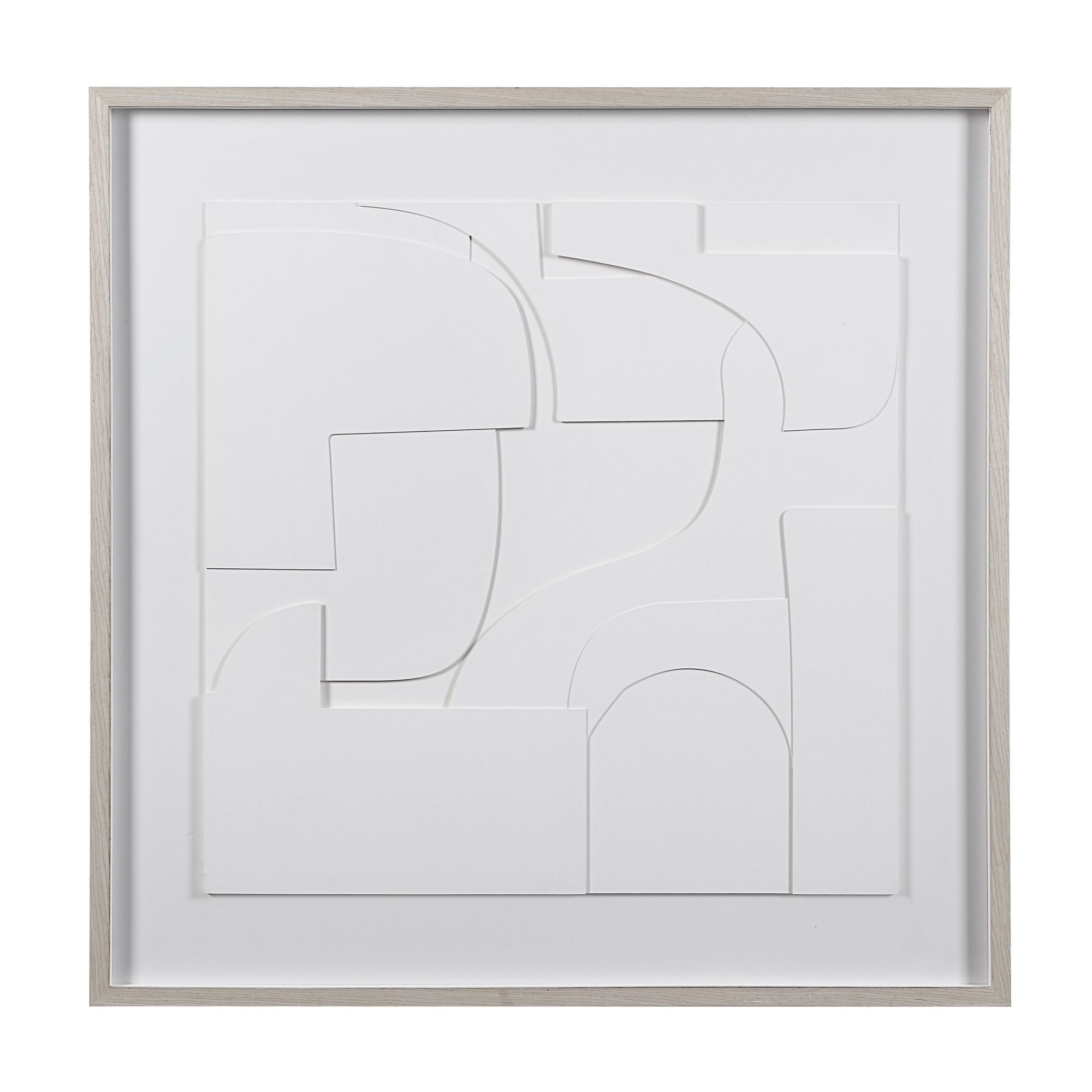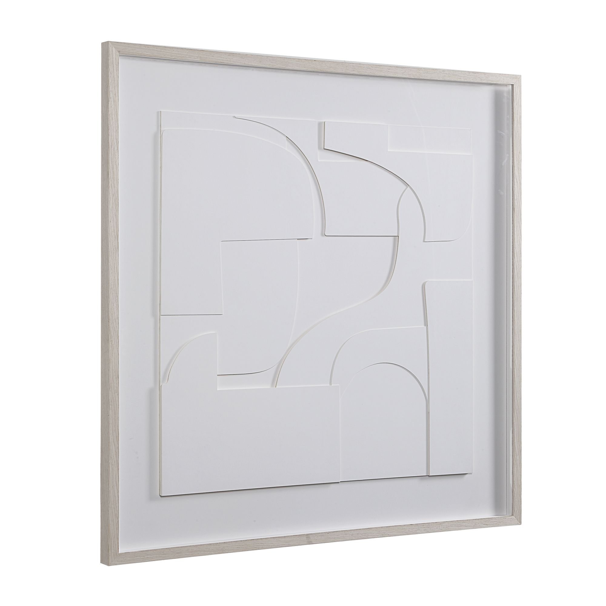 Bringing modern style and interest to any space, this unique artwork is a great choice for any fashion-forward home or office. Layers of geometric forms with a matte white finish are framed in creamy wood veneer resulting in this incredibly appealing modern art. Hang it over a fireplace, buffet or console table for a beautifully timeless statement in any interior.
