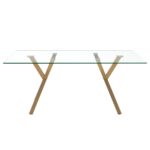 Incorporating a tempered clear glass tabletop on top of metal legs, the fun geometric shape of the base makes this piece a conversation starter. Detailed with chrome-finished glass holders, this dining table seamlessly blends a visually interesting appearance with a captivating style. Leisurely meal times will be easy when you have this chair at your dining table. The wing style is a comforting hug and the plush cushioning will provide hours of comfort. Modern faux leather upholstery is easy to clean and the aged gold legs provide an air of luxury.