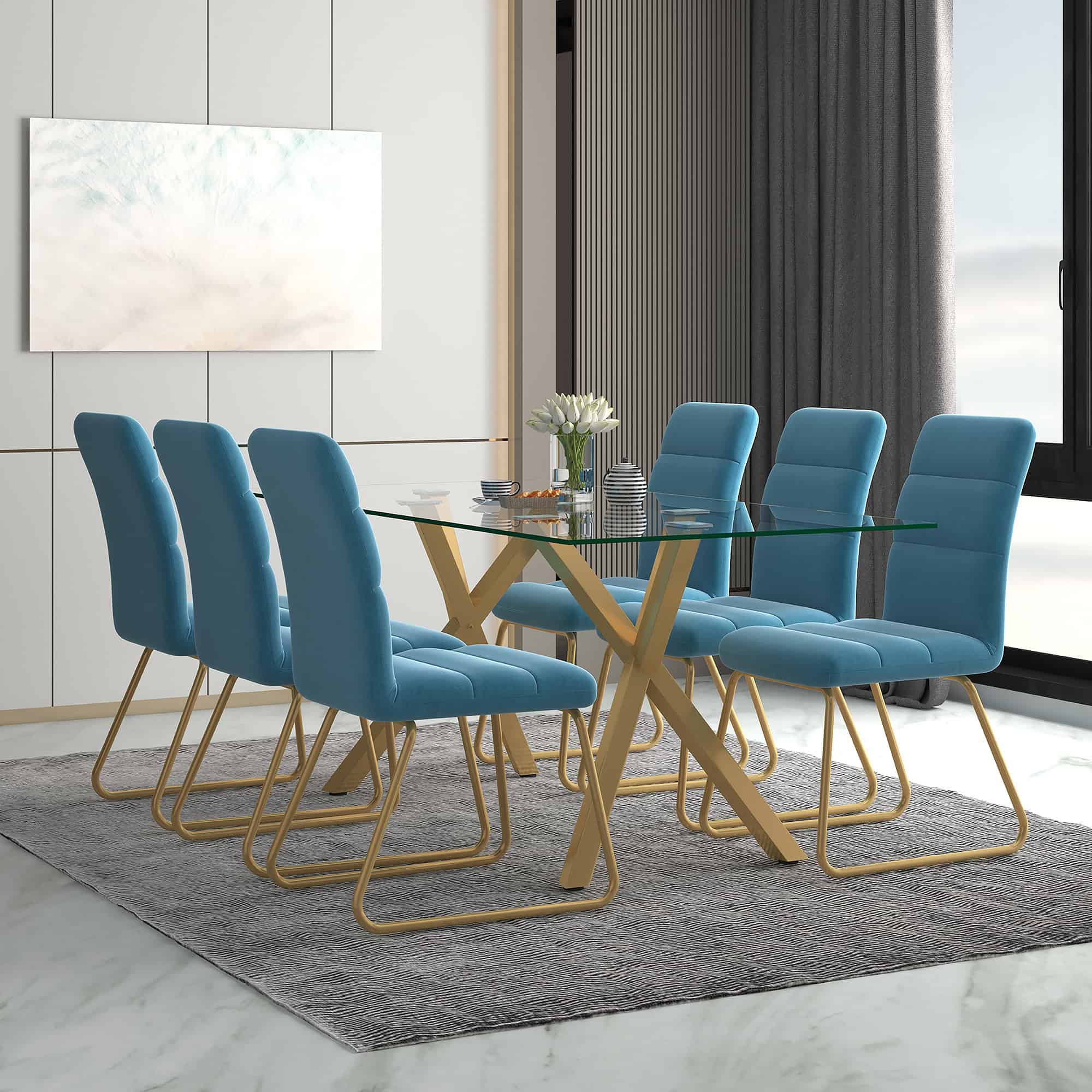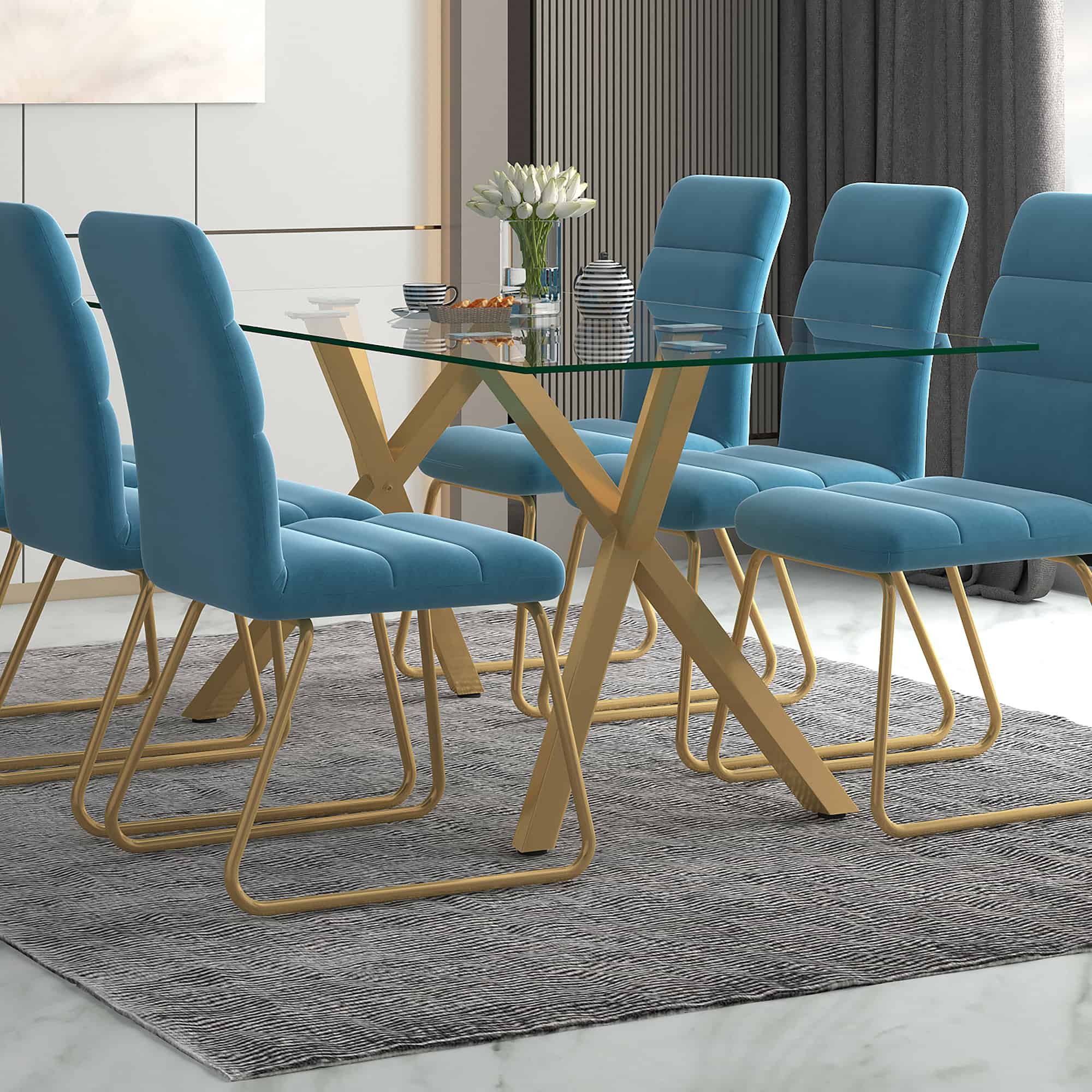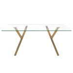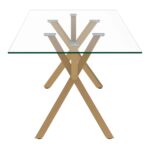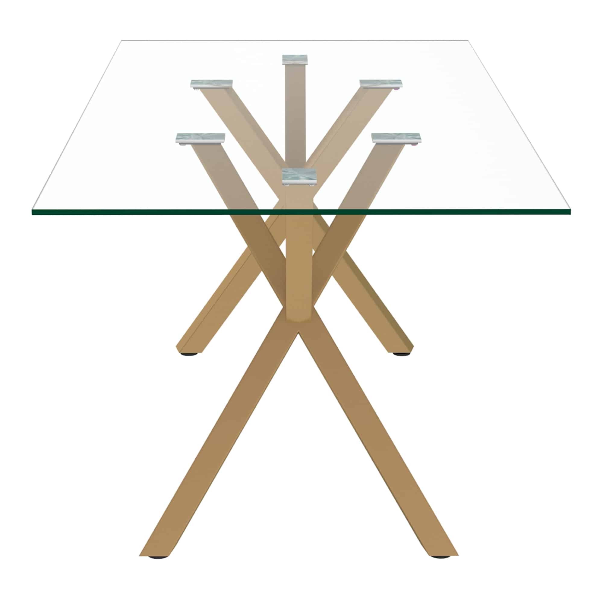 Combining metal and glass elements, this dining table is the perfect match for a variety of different chair styles. Incorporating a tempered clear glass tabletop on top of metal legs, the fun geometric shape of the base makes this piece a conversation starter. Detailed with chrome-finished glass holders, this dining table seamlessly blends a visually interesting appearance with a captivating style. A perfect place to gather for meals, formal or casual.