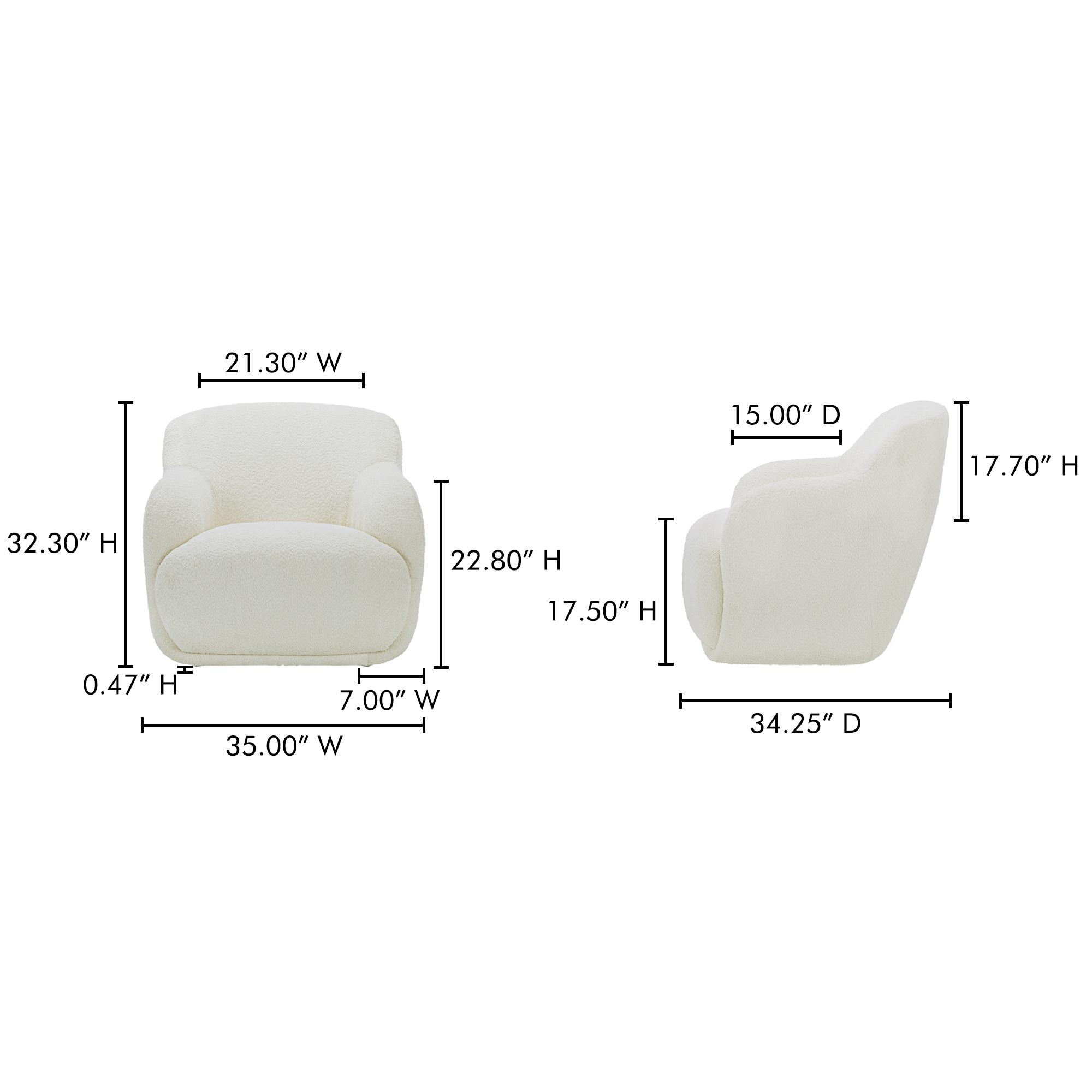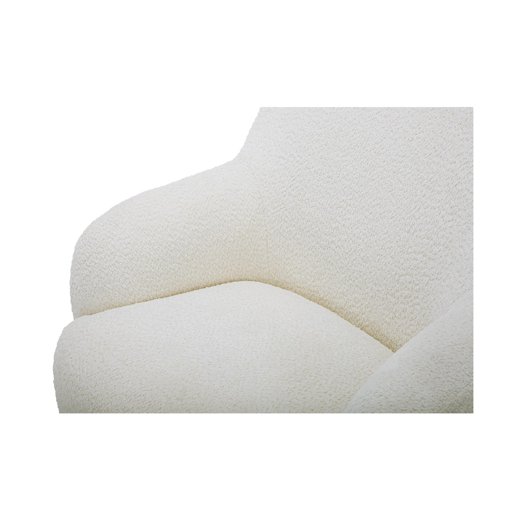 Cancel your plans—Stevie’s calling. Designed with downtime in mind, this lounge chair wraps you in comfort with soft curves, a high back, and arms that gently swoop into its spacious seat. Upholstered in a GRS-certified, 50% recycled cream fabric, Stevie pairs cozy texture with contemporary style. A durable frame of MDF, plywood, and pine supports all that sink-in comfort. Sculptural and lounge-ready—because comfort should never be one-note.