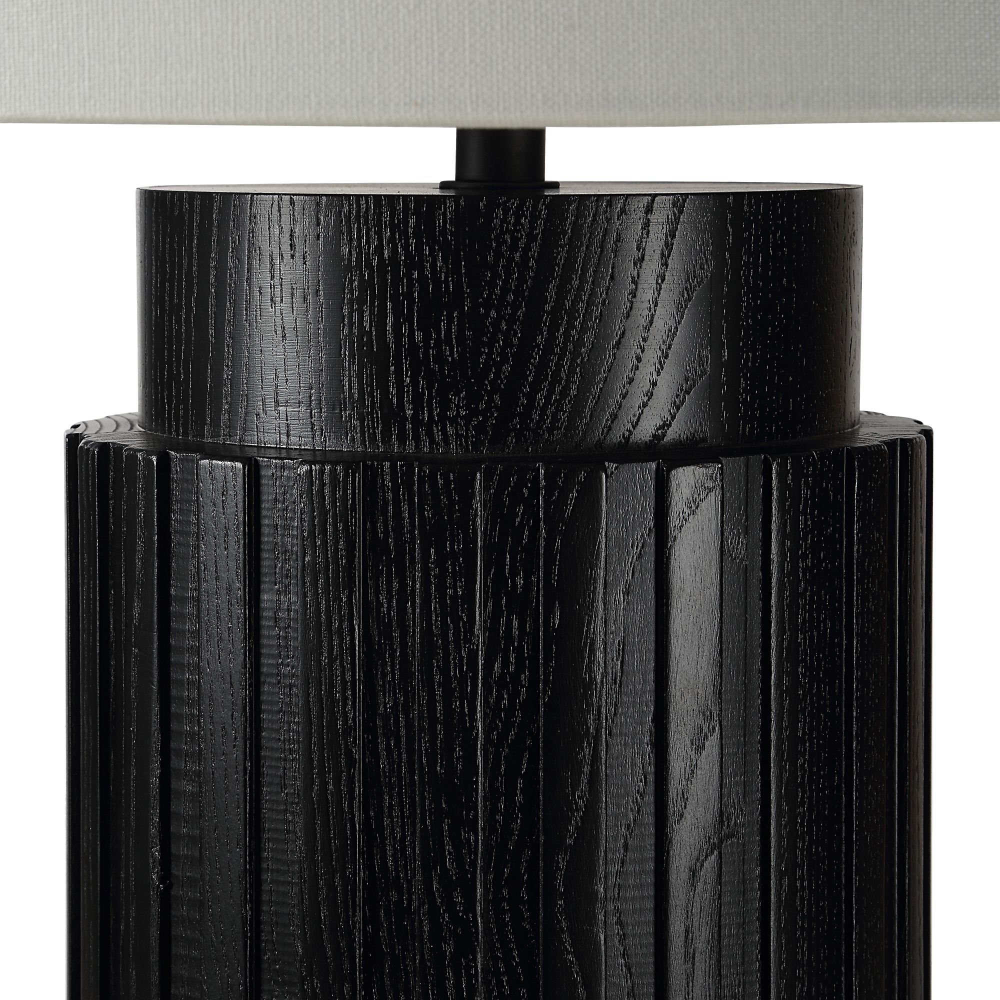 Part of the Steven Sabados collection, this table lamp brings a modern aesthetic to the world of lighting. Featuring a minimalist style, this light is crafted from ash wood with an on-trend ribbed base and a matte black stain. Topped off with a clean-lined tapered linen drum shade, this lamp is the perfect complement to contemporary interiors.