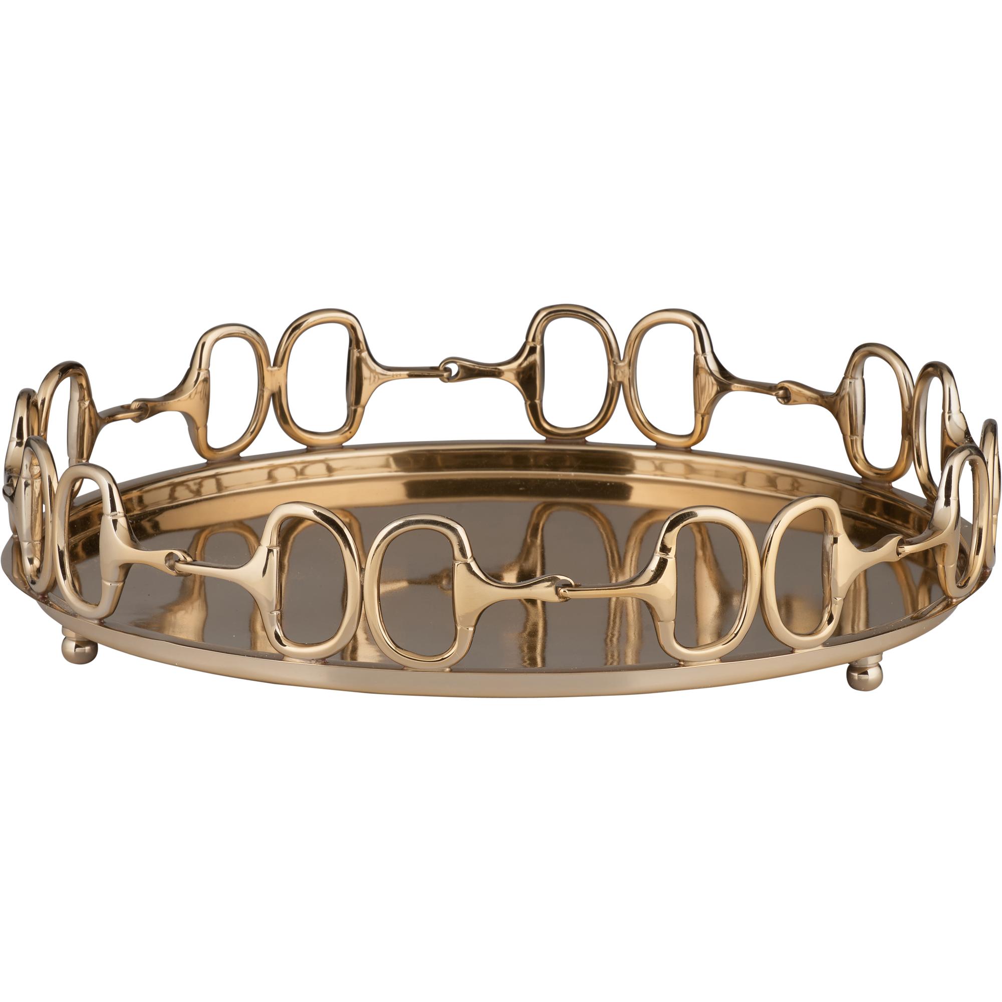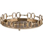 Featuring a round serving tray with “D” ring snaffle bits, Stirrups Tray is an ideal gift for the horse lover that also has a passion for entertaining. Crafted of cast brass with an antique brass patina, this 19″ diameter tray can also be used as a decorative accent in your home.
