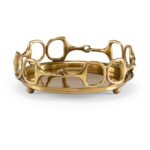 Featuring a round serving tray with “D” ring snaffle bits, Stirrup Tray is an ideal gift for the horse lover that also has a passion for entertaining. Crafted of cast brass with an antique brass patina, this 9.5″ diameter tray can also be used as a decorative accent in your home.