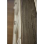 - Two-tone, multi-step lacquer finish. The top features a weathered gray finish on hand-distressed wood, while the rest of the case has an eggshell antiqued finish.