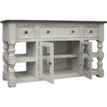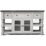 Exuding farmhouse chic with just the right touch of old-world charm, the Stone Collection is meticulously crafted from solid pine wood. The wood is lightly distressed, showcasing a white finish and complemented by weathered gray tops.