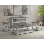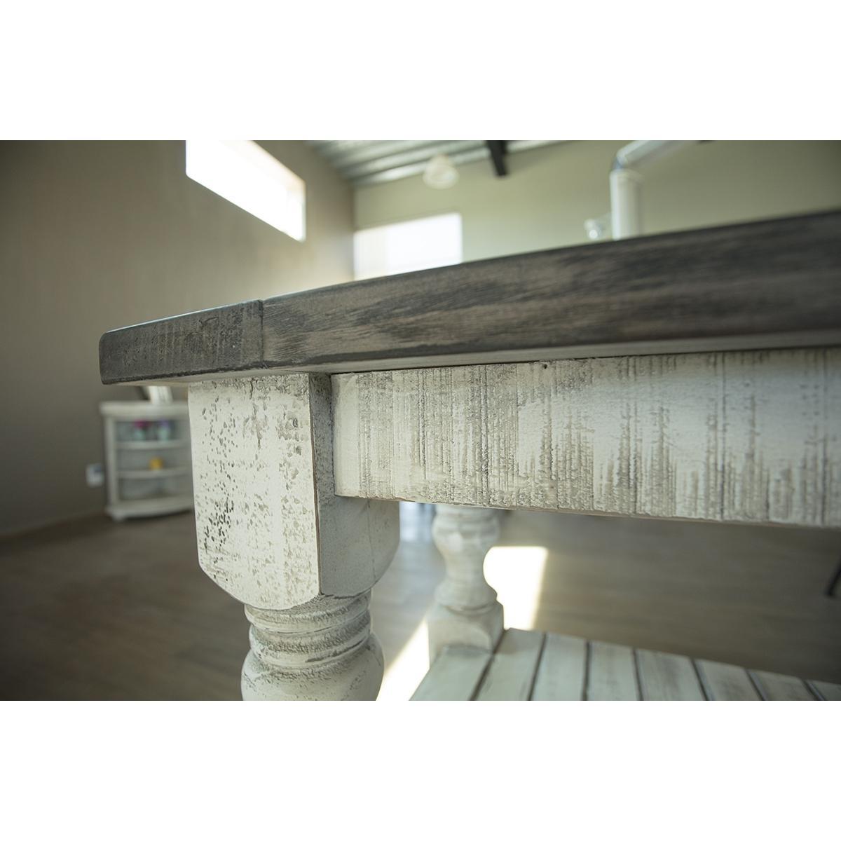 Exuding farmhouse chic with just the right touch of old-world charm, the Stone Collection is meticulously crafted from solid pine wood. The wood is lightly distressed, showcasing a white finish and complemented by weathered gray tops.