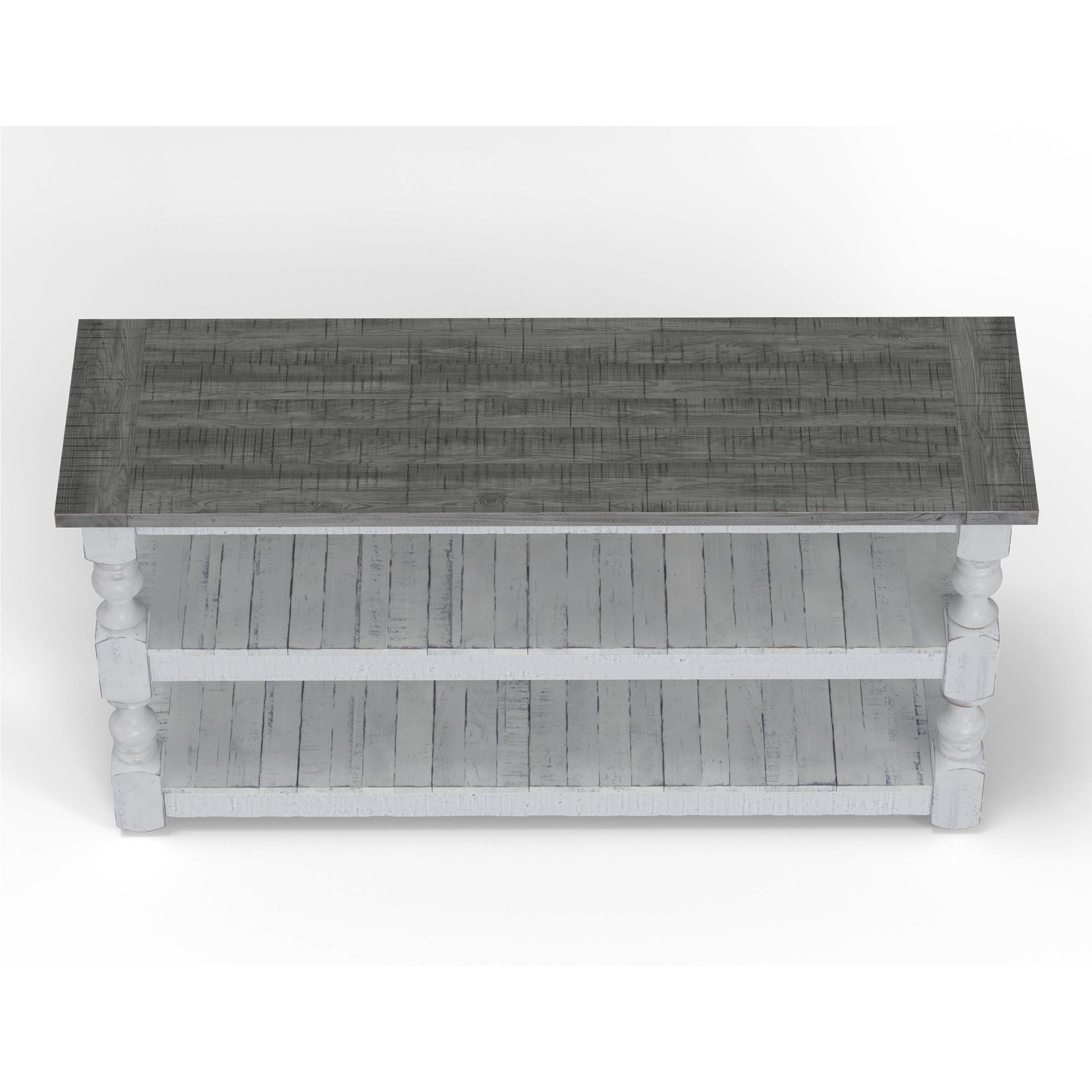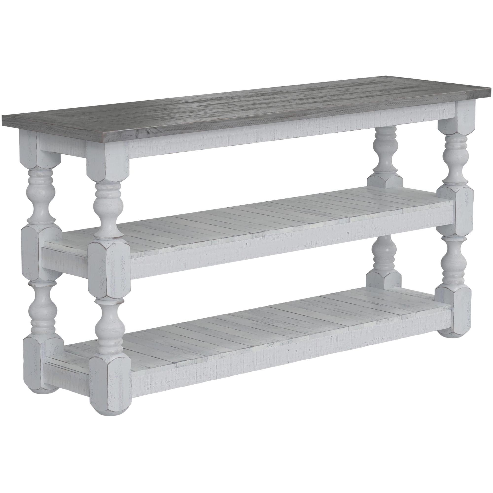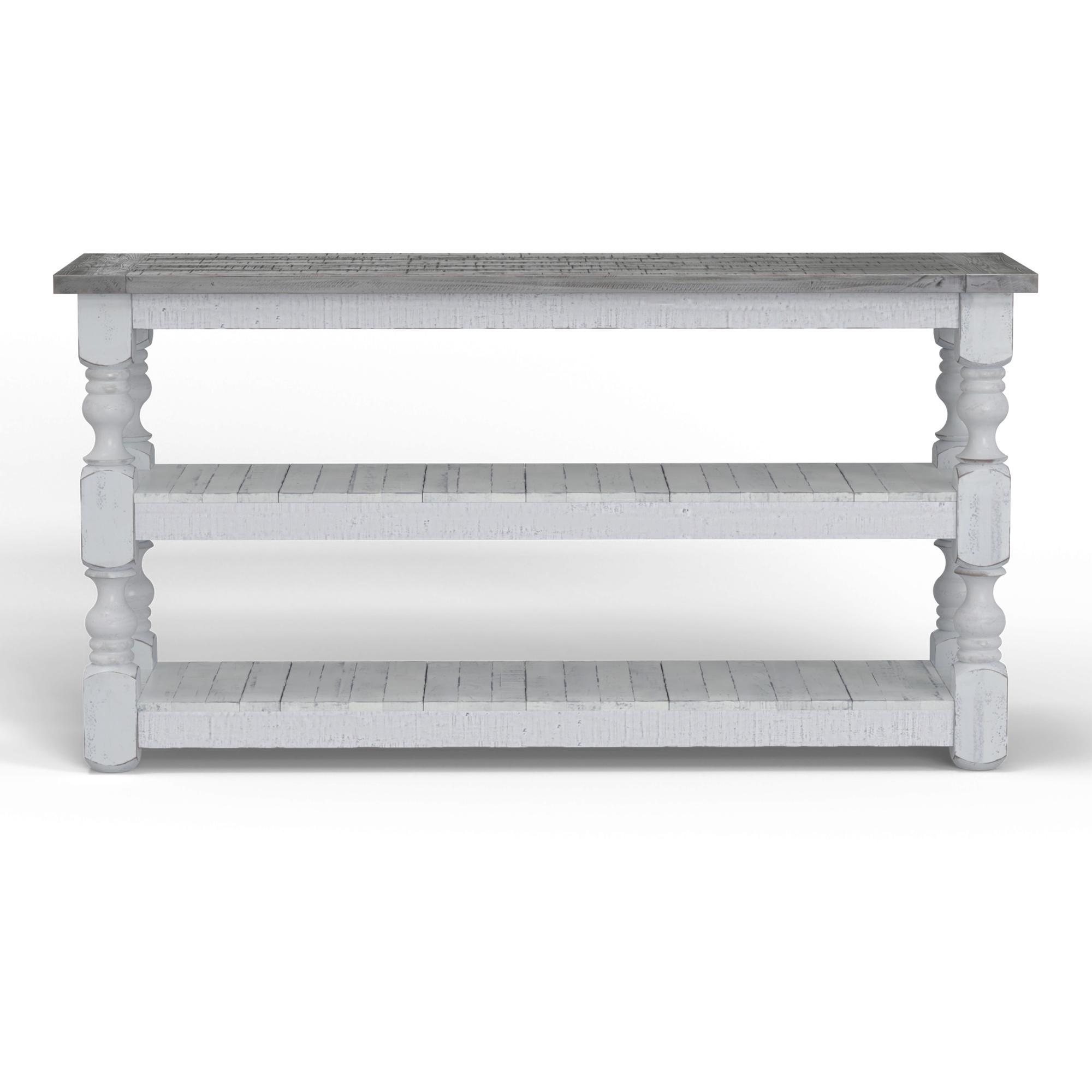 Exuding farmhouse chic with just the right touch of old-world charm, the Stone Collection is meticulously crafted from solid pine wood. The wood is lightly distressed, showcasing a white finish and complemented by weathered gray tops.