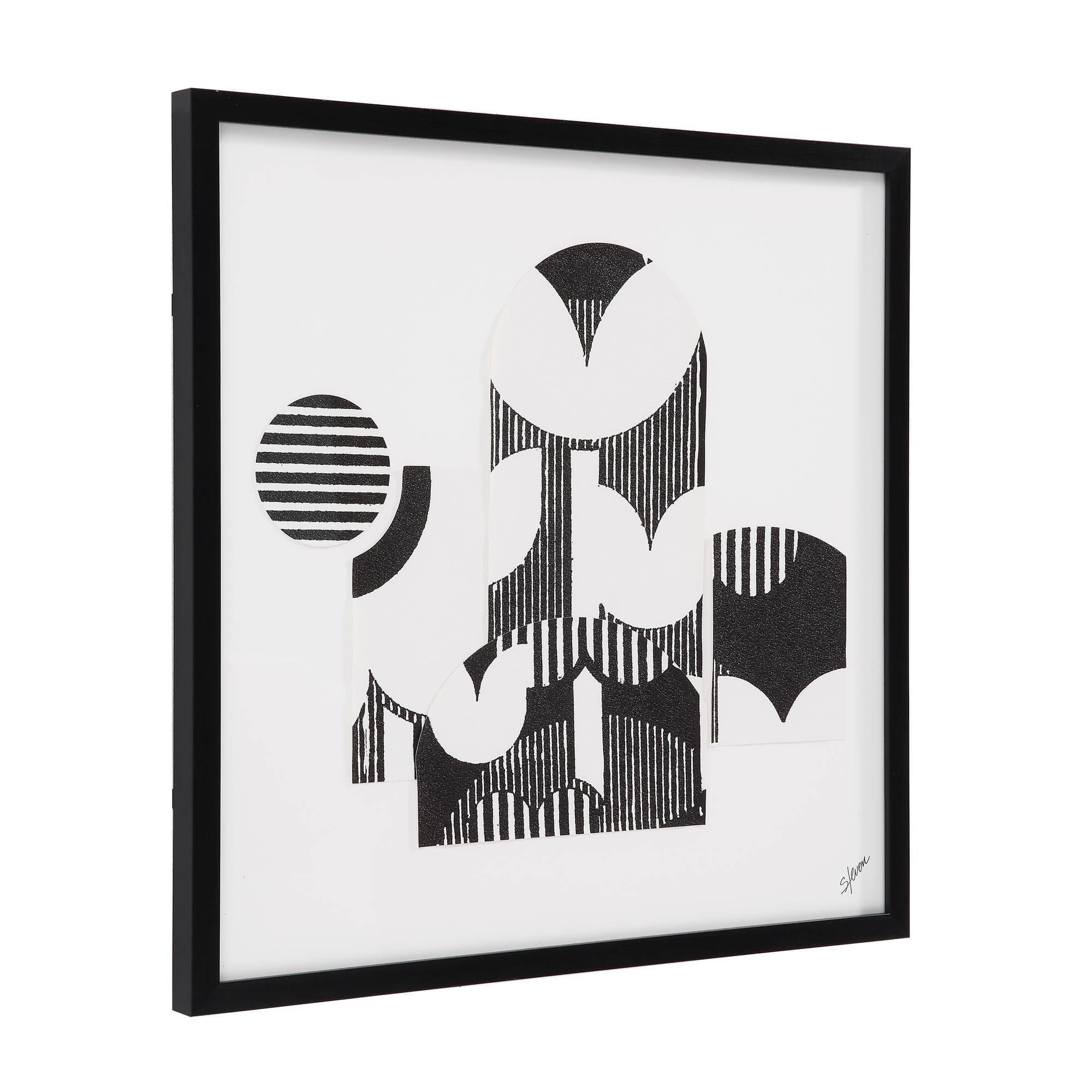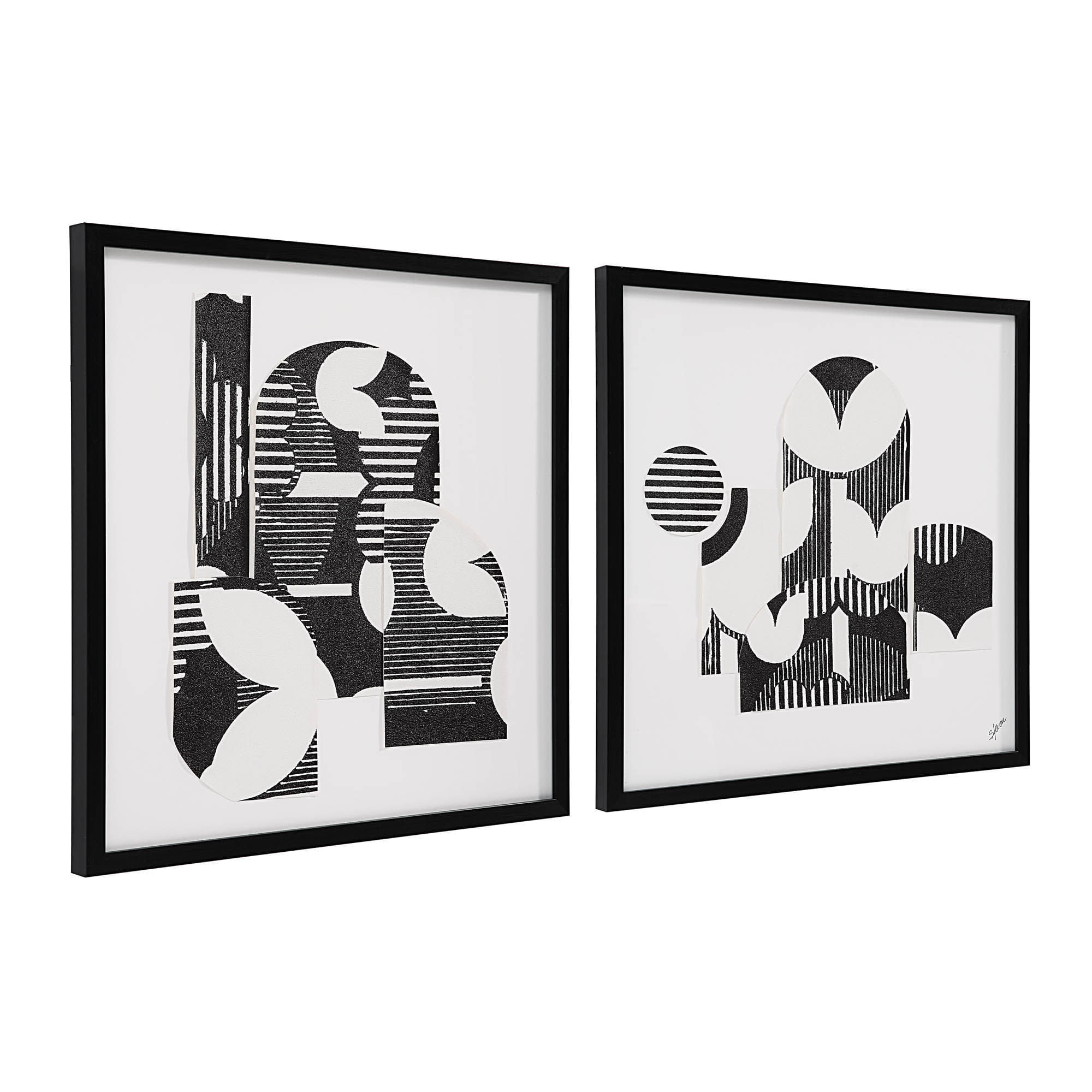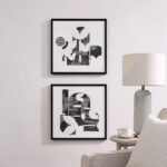 Retro-inspired graphic design gets a refined makeover in this set of two wall art frames. These framed collage pieces add charm to the mid-century modern or contemporary interior while retaining a subtlety that allows the space to maintain a sense of calm. Arranged within a gallery wall, side by side, vertically stacked or across the room from one another, each design perfectly complements and contrasts to the other.
