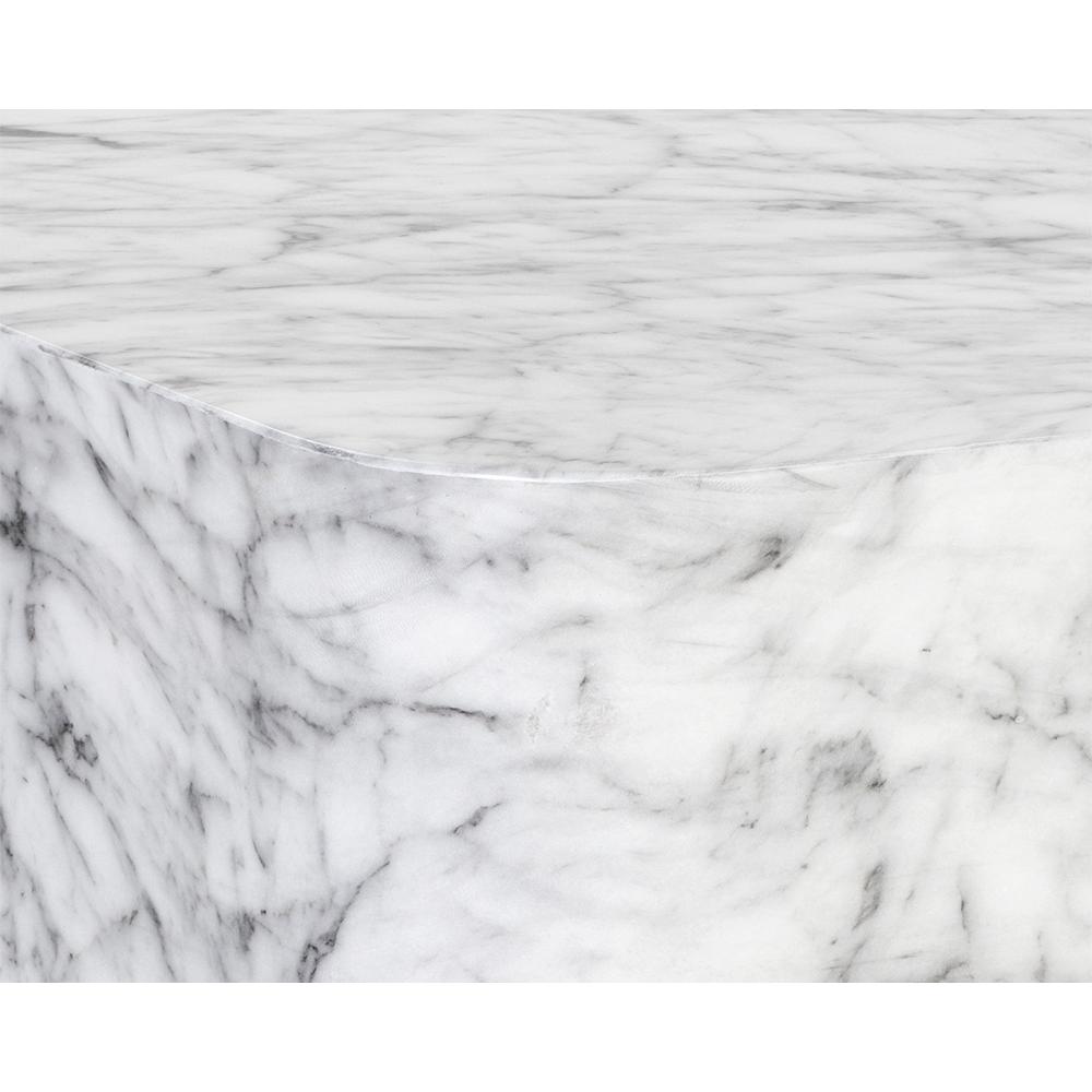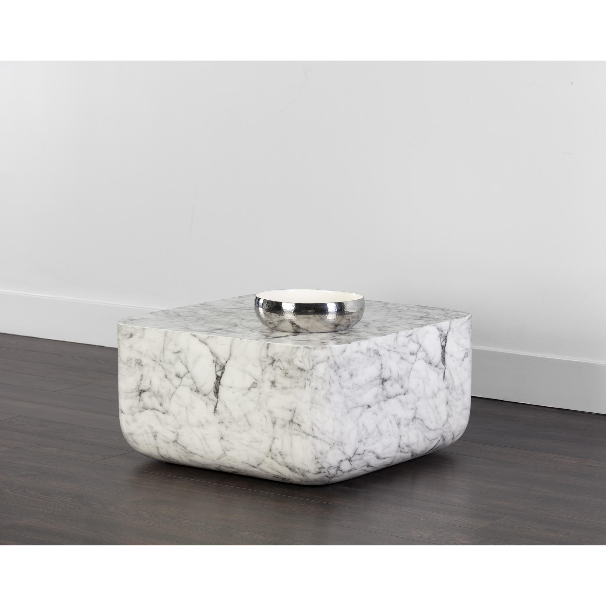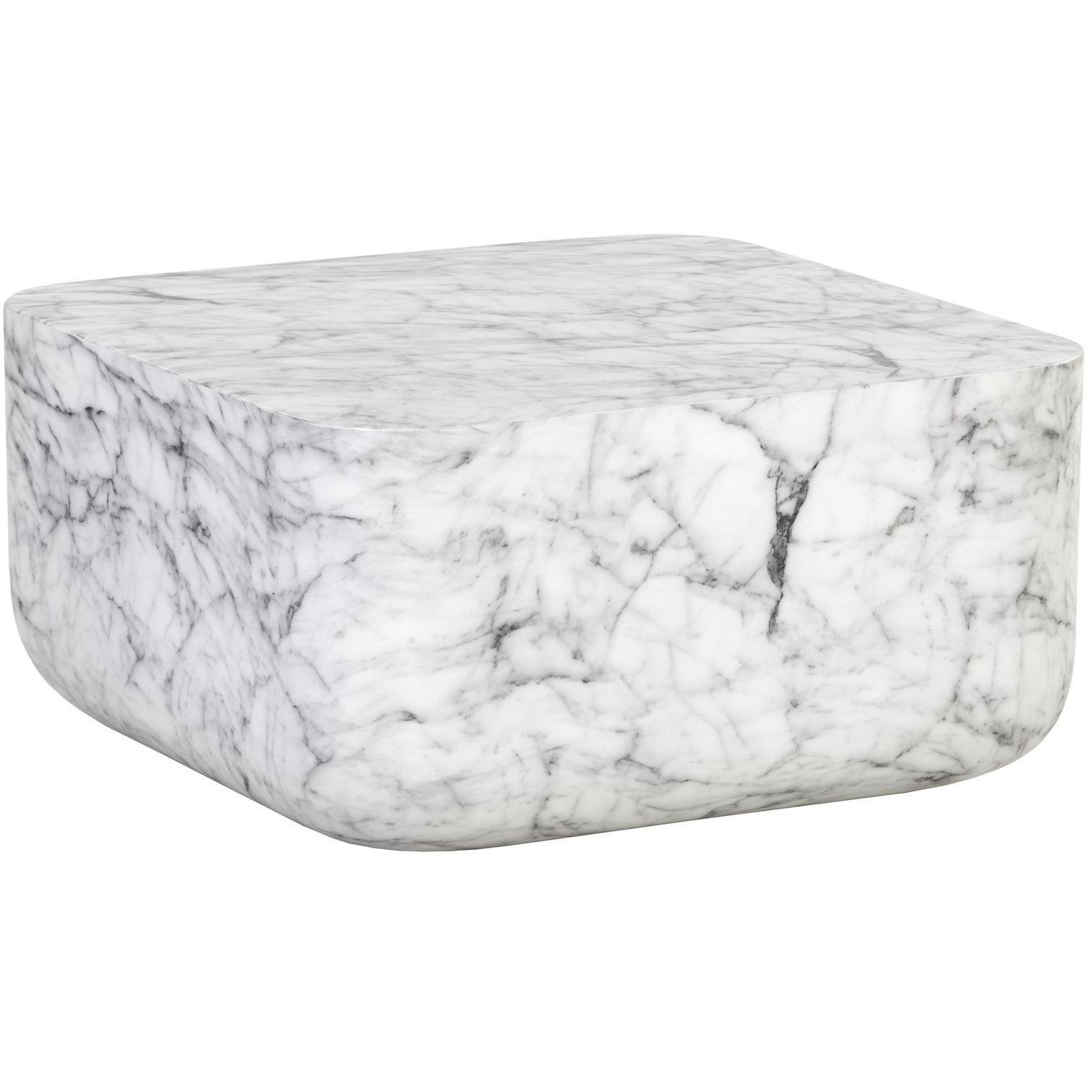 A bold and contemporary coffee table. Sculpted from concrete and overlaid with a marble-look finish. The rounded square design is eye-catching and unique.