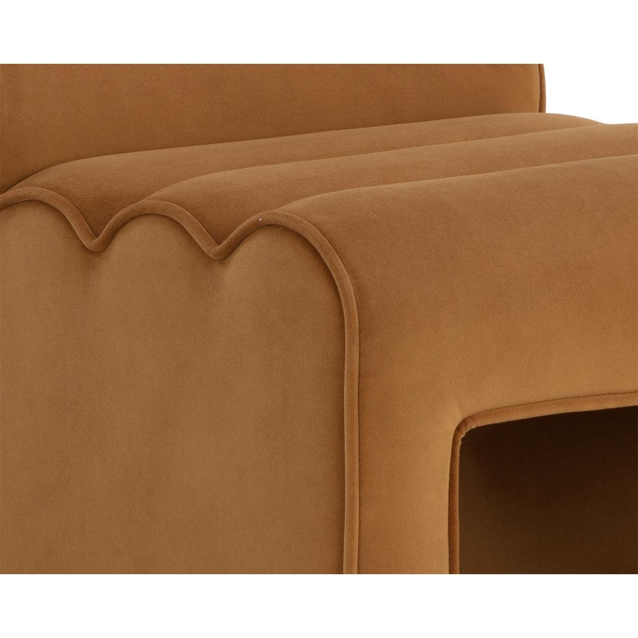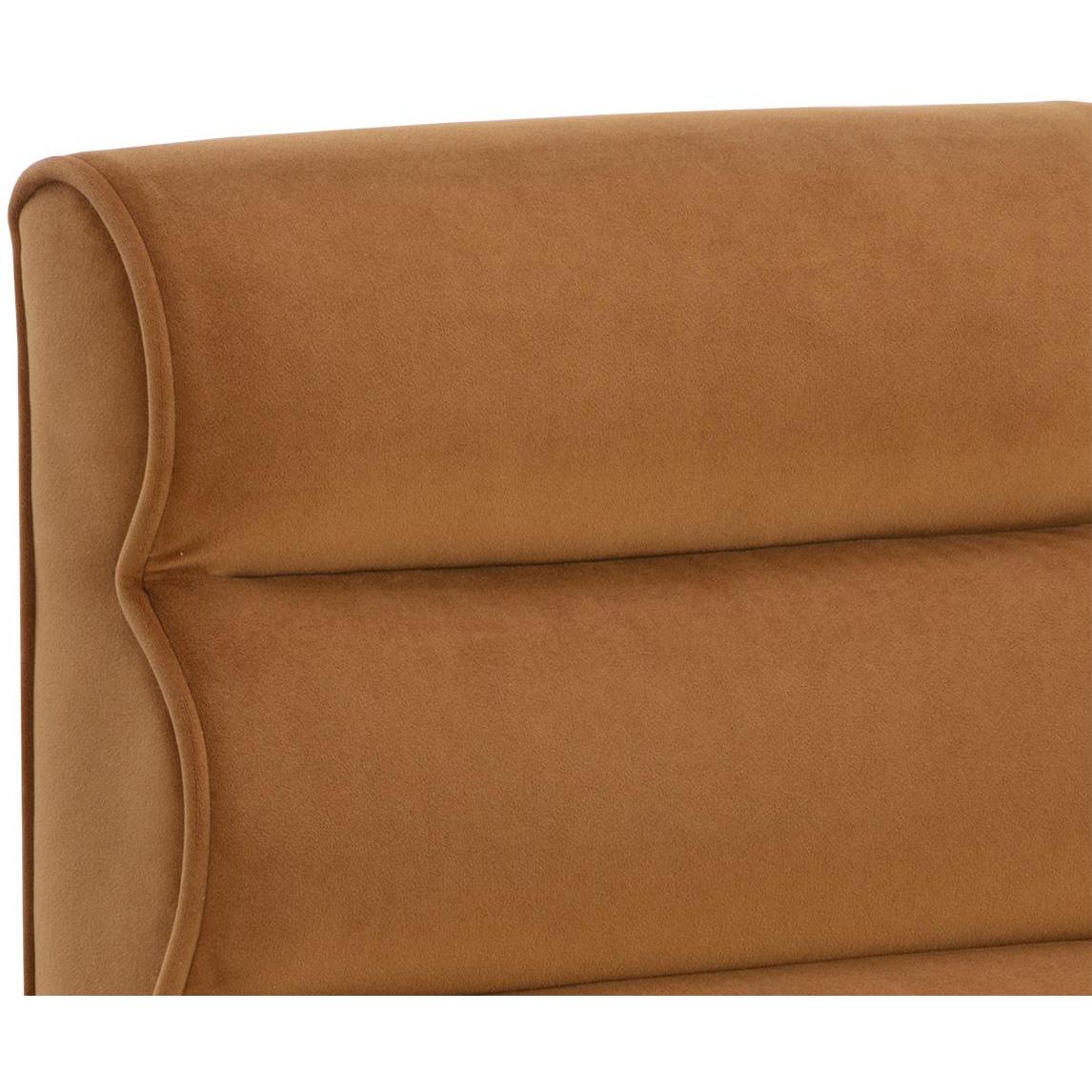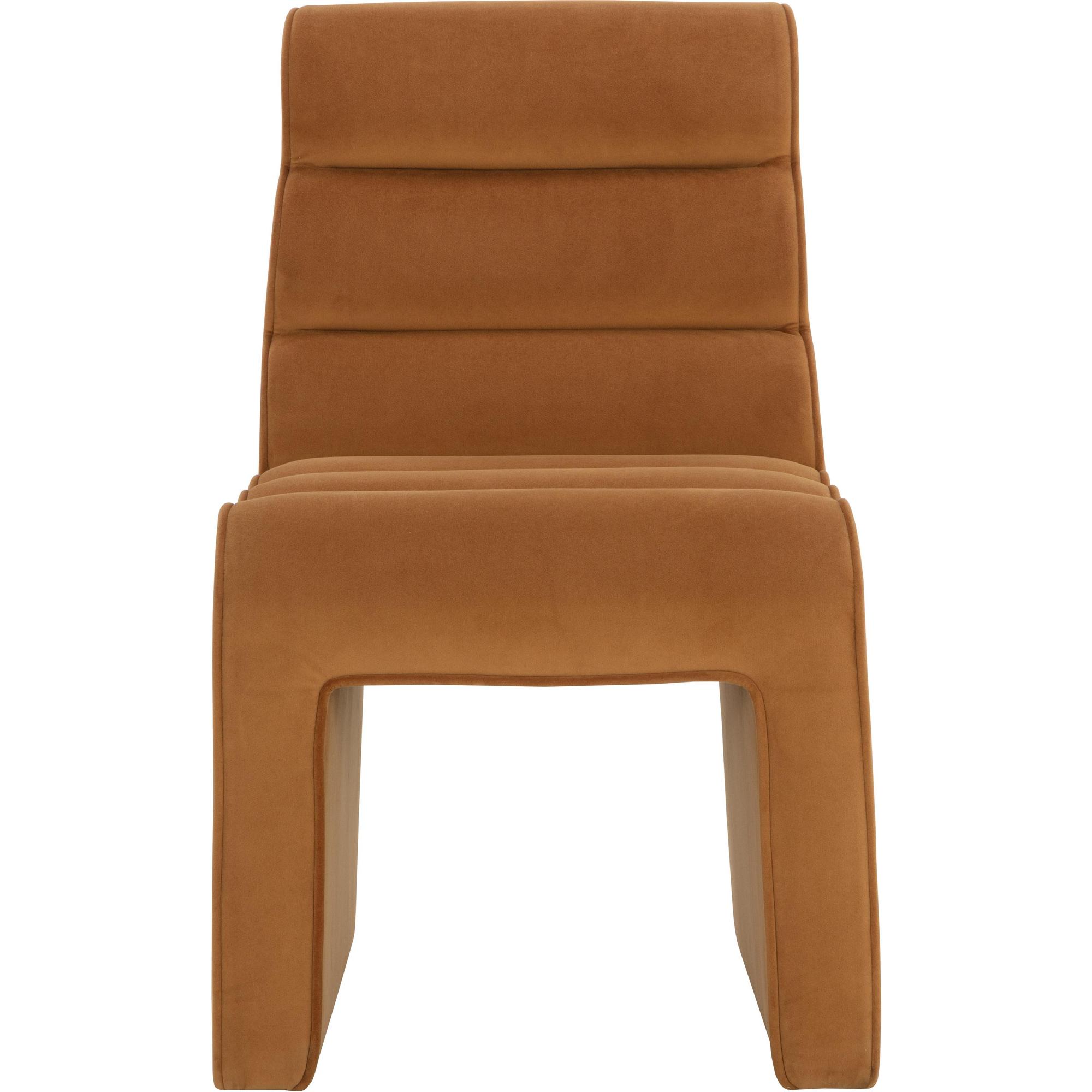 Elevate your dinner gatherings with the bold form of the Stuart Dining Chair. A tufted channel design creates a unique side profile that elevates the drama. Fully upholstered in meg gold fabric with matching piping for added texture and dimension.