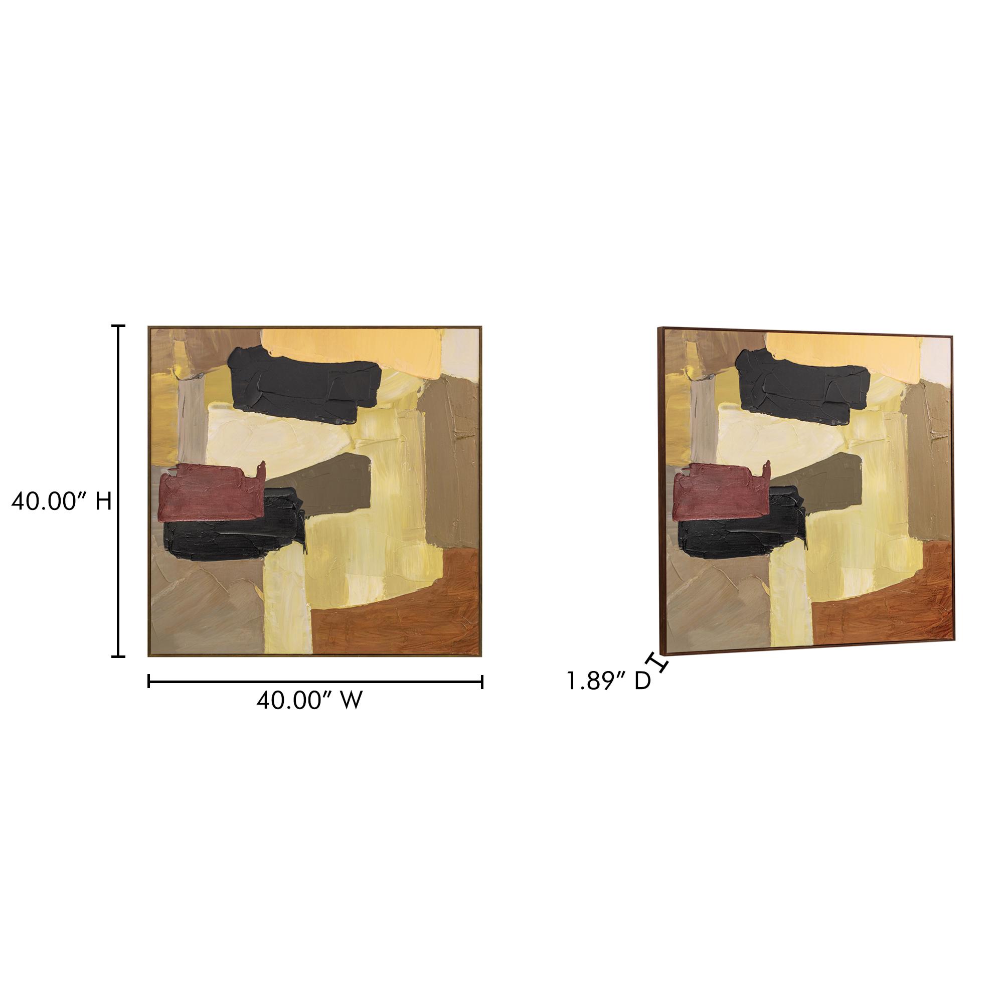 The Studio framed painting’s layered modernist abstraction weaves warm, neutral tones into a composition of bold softness. Its rich textures and nuanced palette evoke a sense of collected elegance and warmth, harmonizing soft warmth with understated boldness.